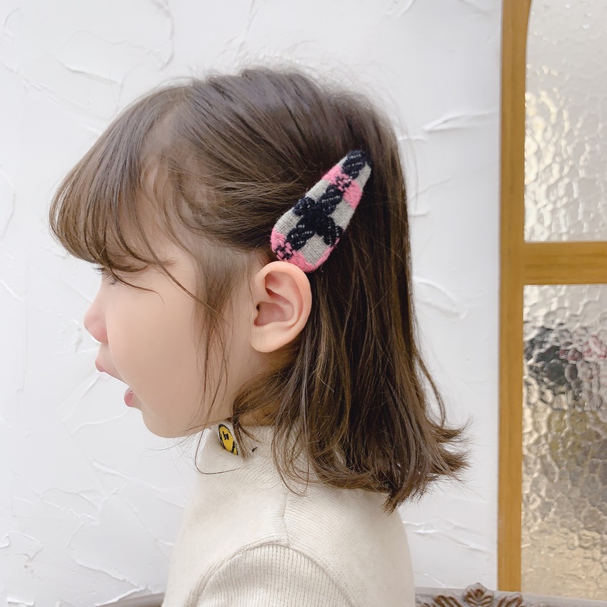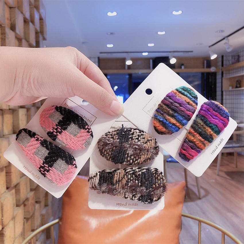 1 Pair Autumn Winter New Fashion Sweet Girl Children’s Wool Hairpins Cute Stripes Houndstooth Stripes BB Clip Hair Accessories