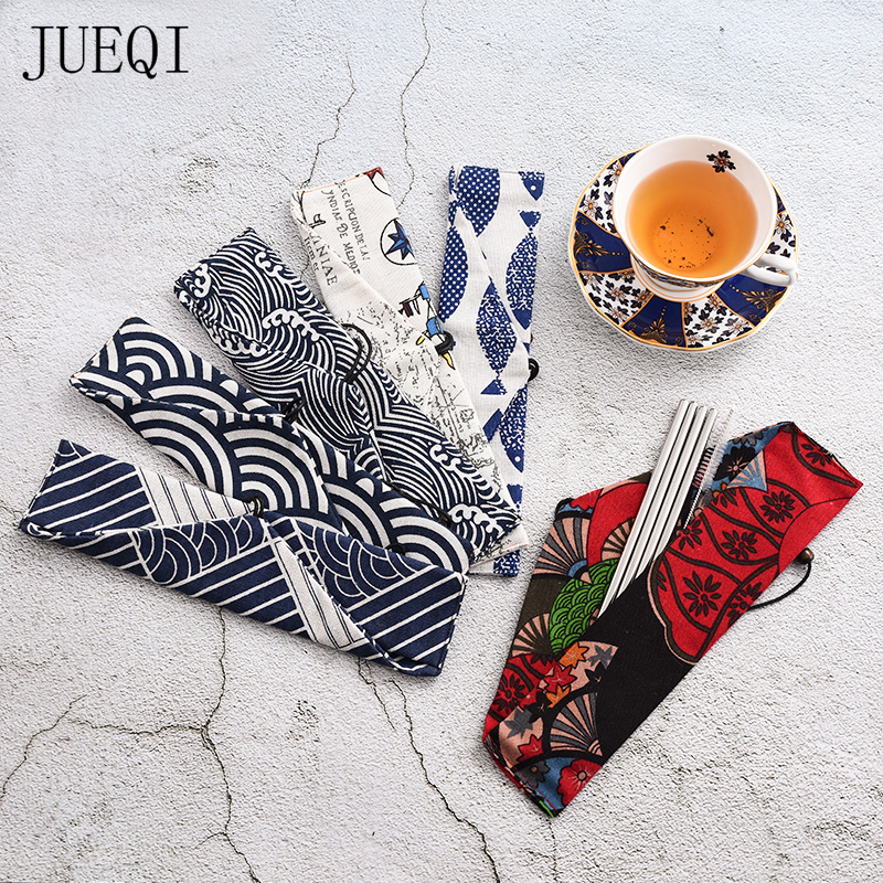 1 pc Pockets Portable Metal Straw Bags Multicolour Resuable Straw Linen Storage Bag Pouch Chopsticks Spoon Light Tableware Bag