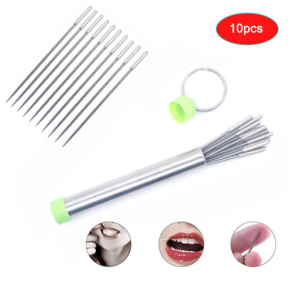 10 Pcs Outdoor Stainless Steel Metal Titanium Toothpick Reusable Food Fruit Fork with Case for Travel Camping