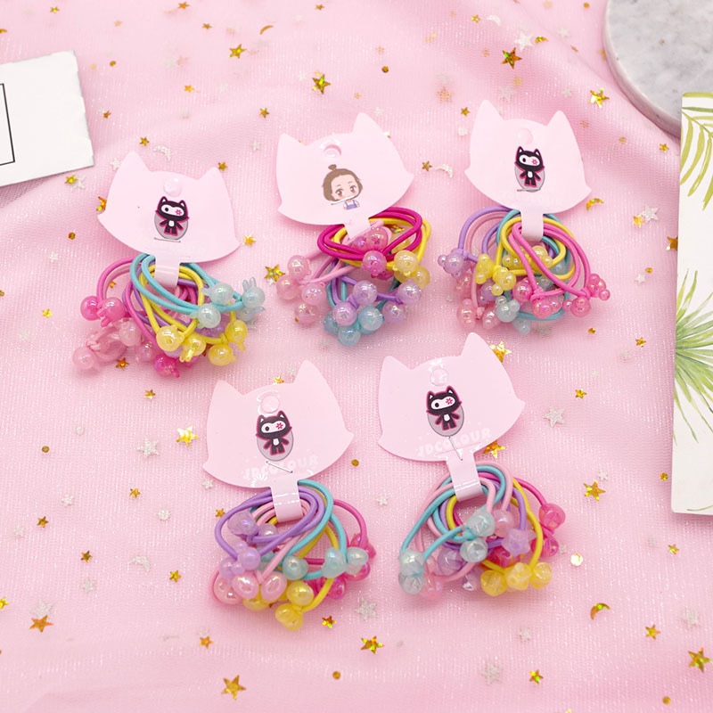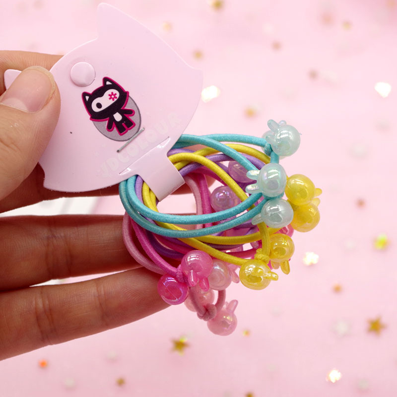10 Pcs/set Simple Korean Color Transparent Beads Children Knotted Rubber Elastic Hair Bands for Child Girl Hair Accessories
