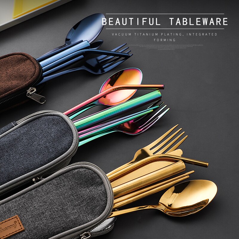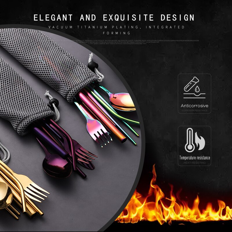 10 pieces of black tableware, 304 stainless steel tableware, knife, fork, spoon and chopsticks tableware, wedding silver tablewa