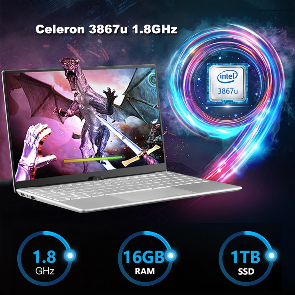 14.1 Inch Metal Shell 16GB RAM M.2 SSD Laptop Intel 3867U Private Camera Notebook Dual Band WiFi BT Narrow Bezel for office game