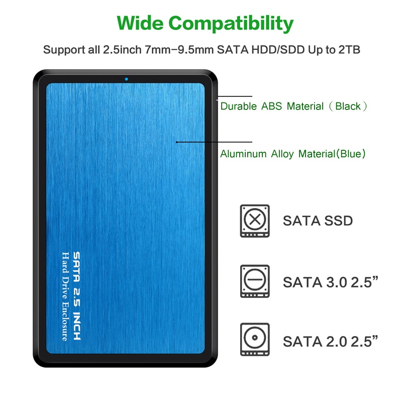 2.5 inch Transparent USB3.0 to Sata 3.0 HDD Case Tool Free 5 Gbps Support 2TB UASP Protocol Hard Drive Enclosure