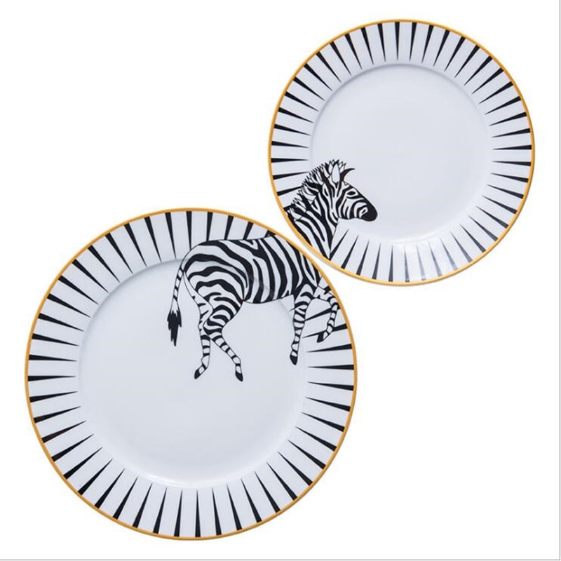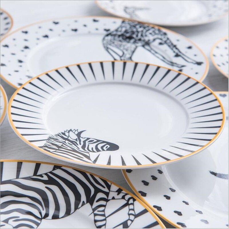 2 Pcs 6 and 8 Inch Animal Design Round Bone China Plate Tableware Set of 2 Ceramic Dinner Plate Zebra Giraffe Wallaby Antelope