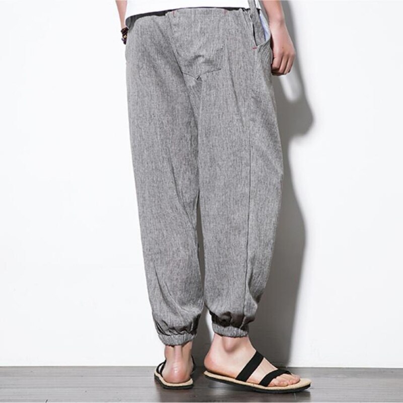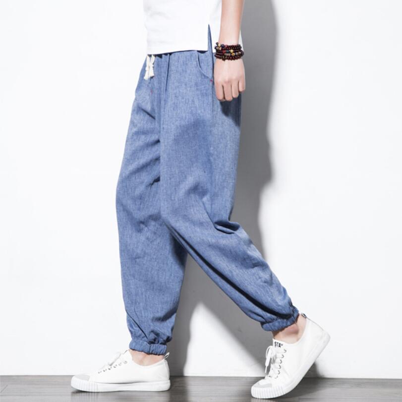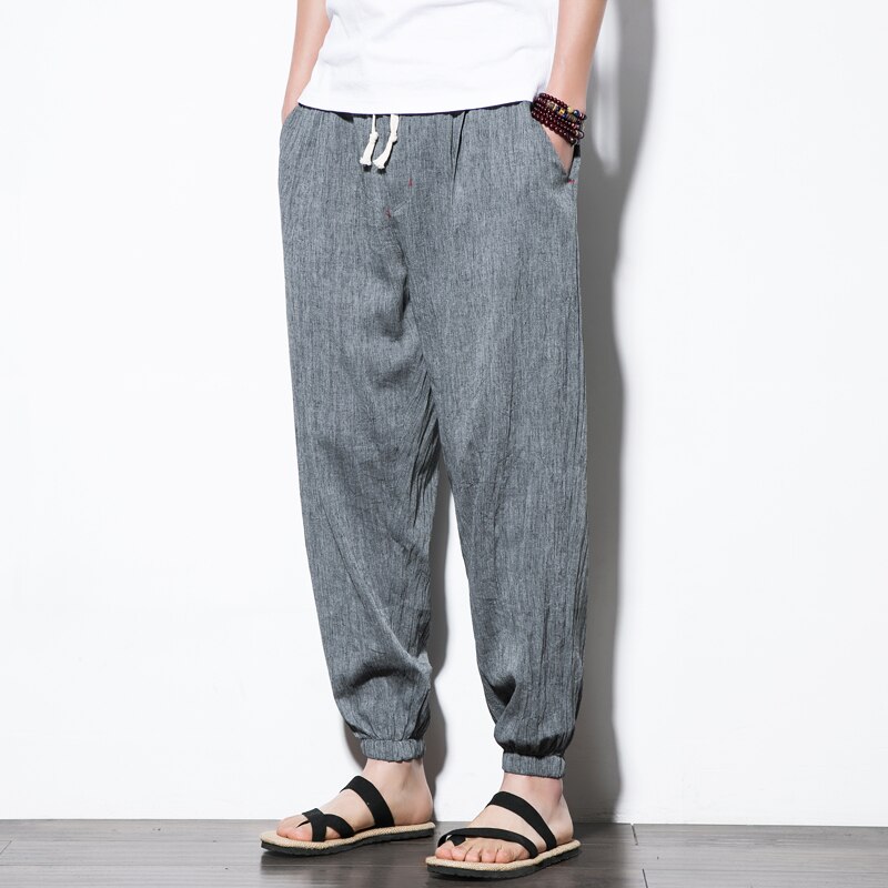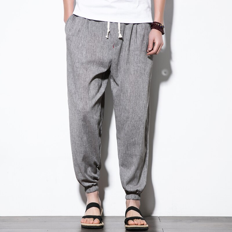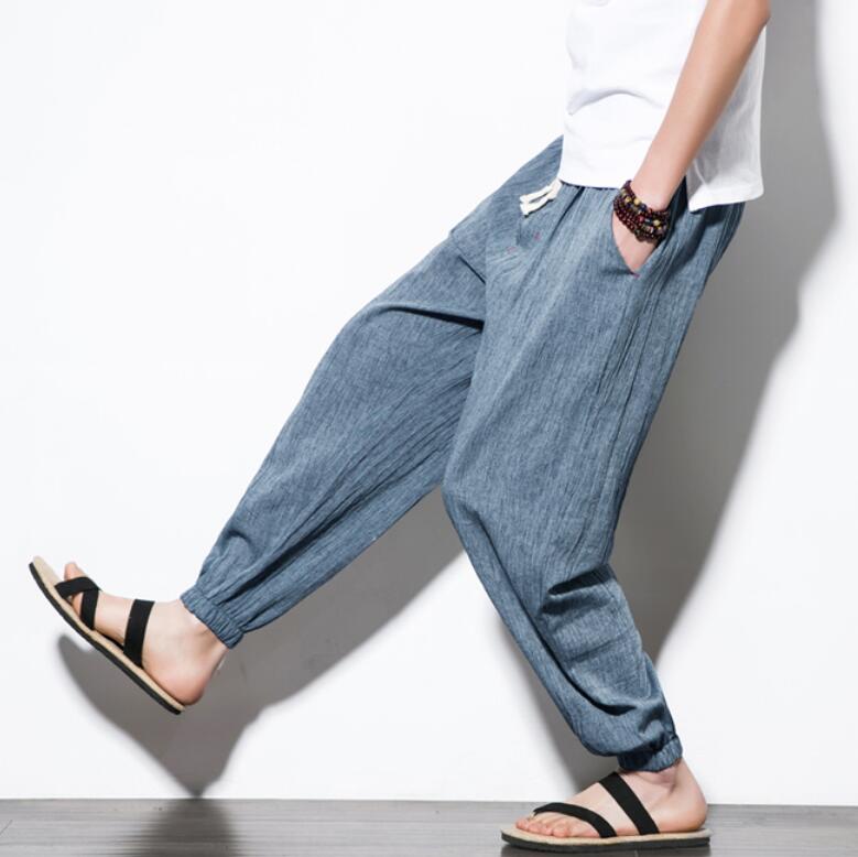 2019 Men’s spring summer fall style linen harem pants solid cotton cross-pants loose trousers joggers linen boho sweatpants 5XL