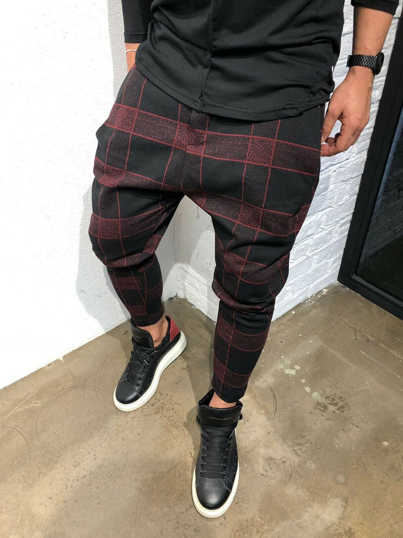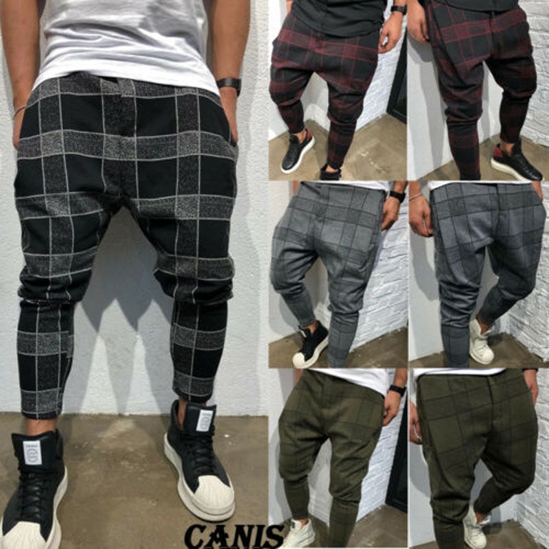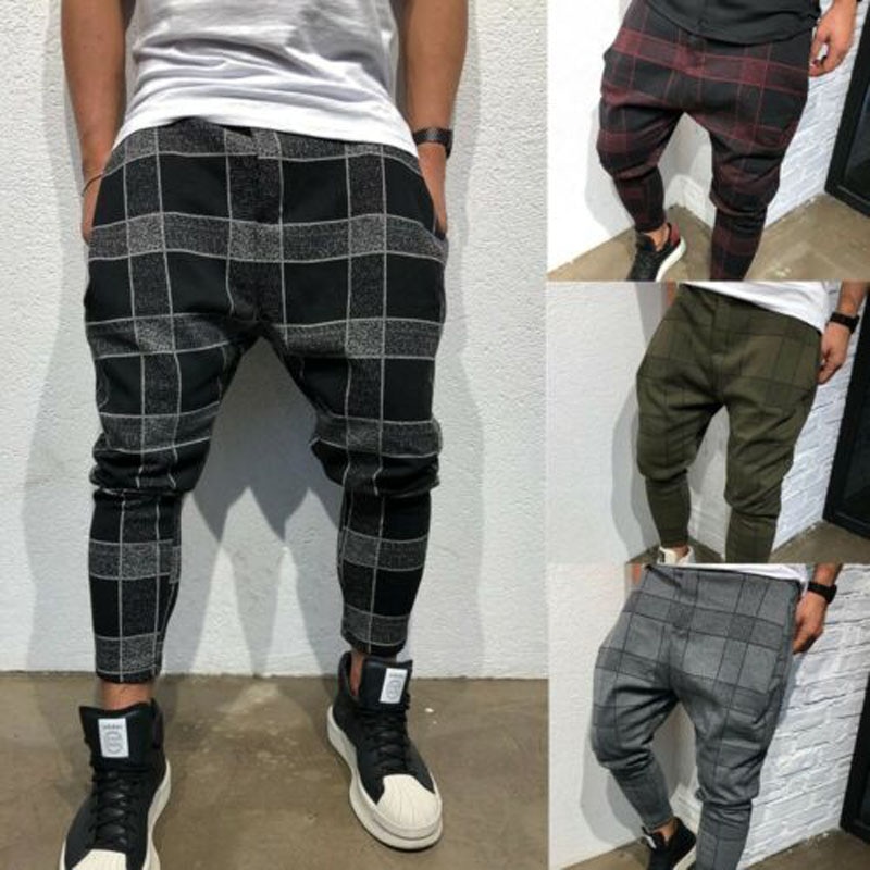 2019 New Brand Mens Jogger Cargo Pants Casual Fitness Plaid Casual Straight Leg Trousers Pencil Jogger Cargo Pants