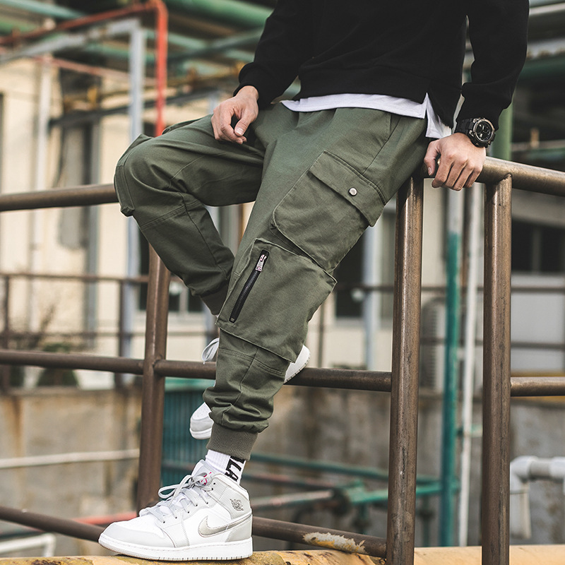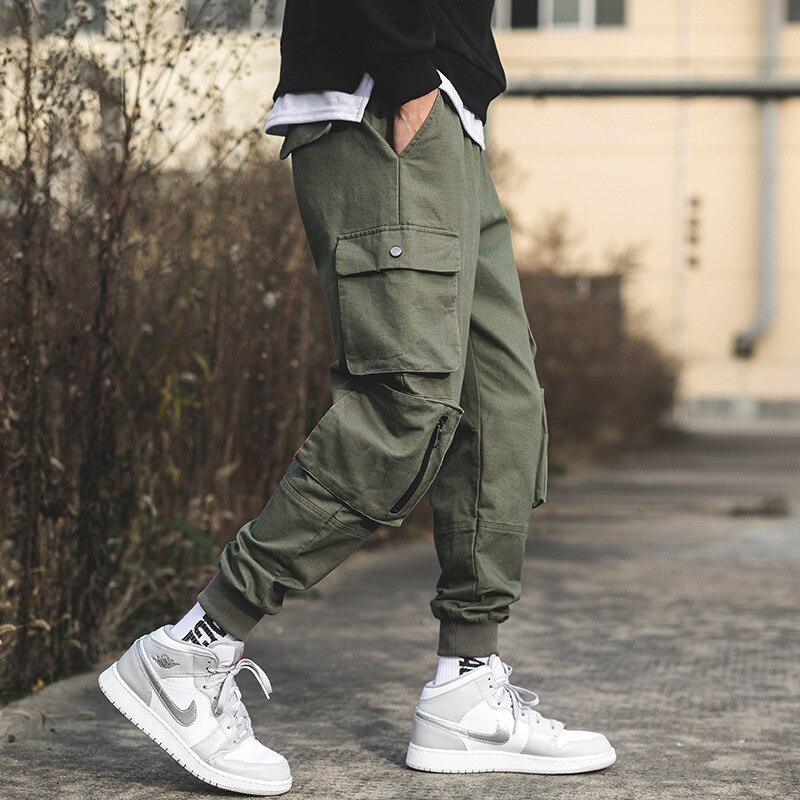 2019 SLOUPPG Men Fashion Streetwear Mens Jogger Pants Ribbons Cotton Cargo Pant Trousers Elastic Waist Harem Pant Men