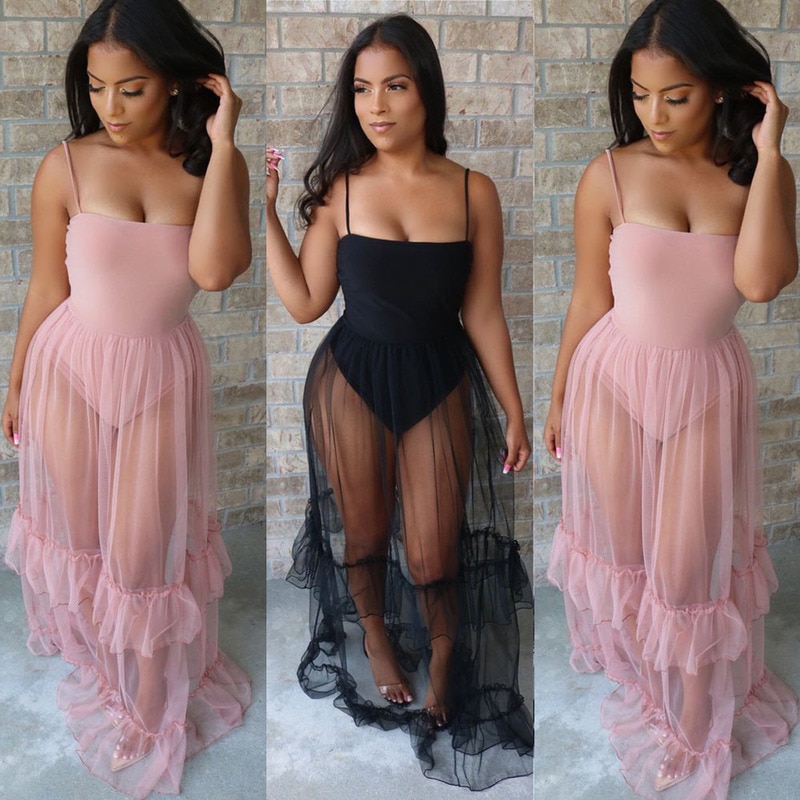 2019 Women’s Lace Fishnet Dress See Through Shiny Black Mesh Knee Length Dress Sexy Club wear Summer Dress Women