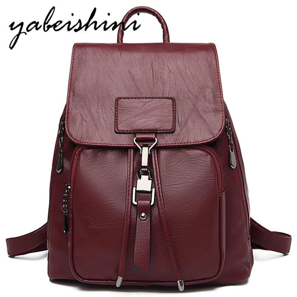 2019 Women’s leather backpack Female Flip cover backpack door lock school bags for teenage girls Lady travel backpack Sac a Dos