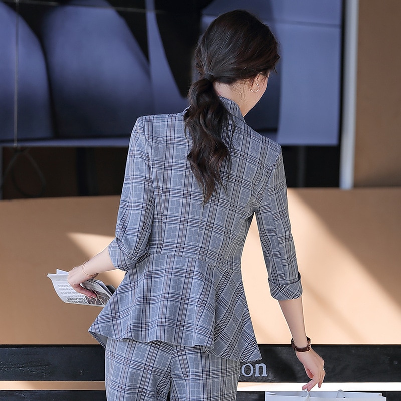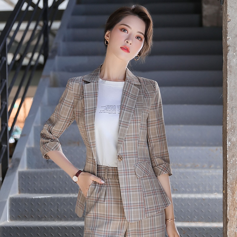 2020 Female Office Work Formal Pant Suits Women’s Suit Lady 2Piece Set Blazer Trouser Jacket Suits Plus Size Short 3/4 Sleeve OL