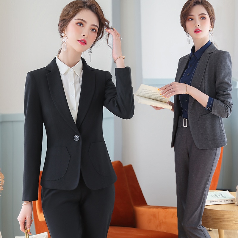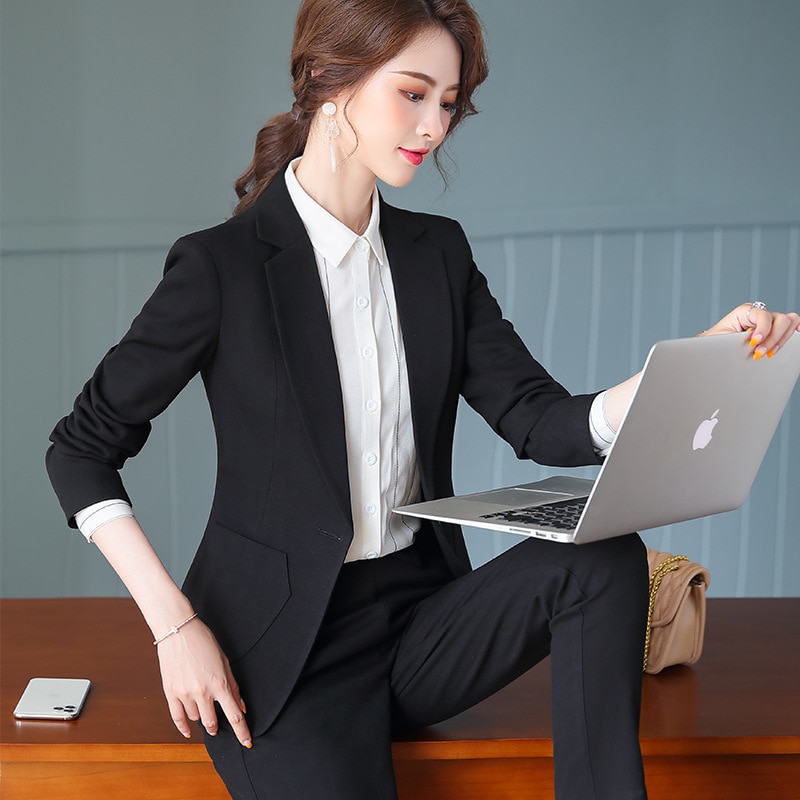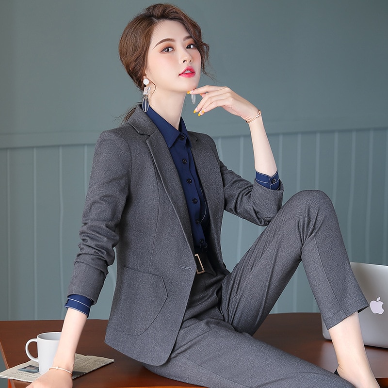 2020 New Female Formal Elegant Women Office Lady Pant Suits of Business OL Blazer Suit Jackets Length Trouser Two Pieces Set