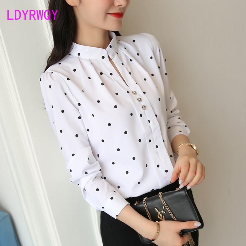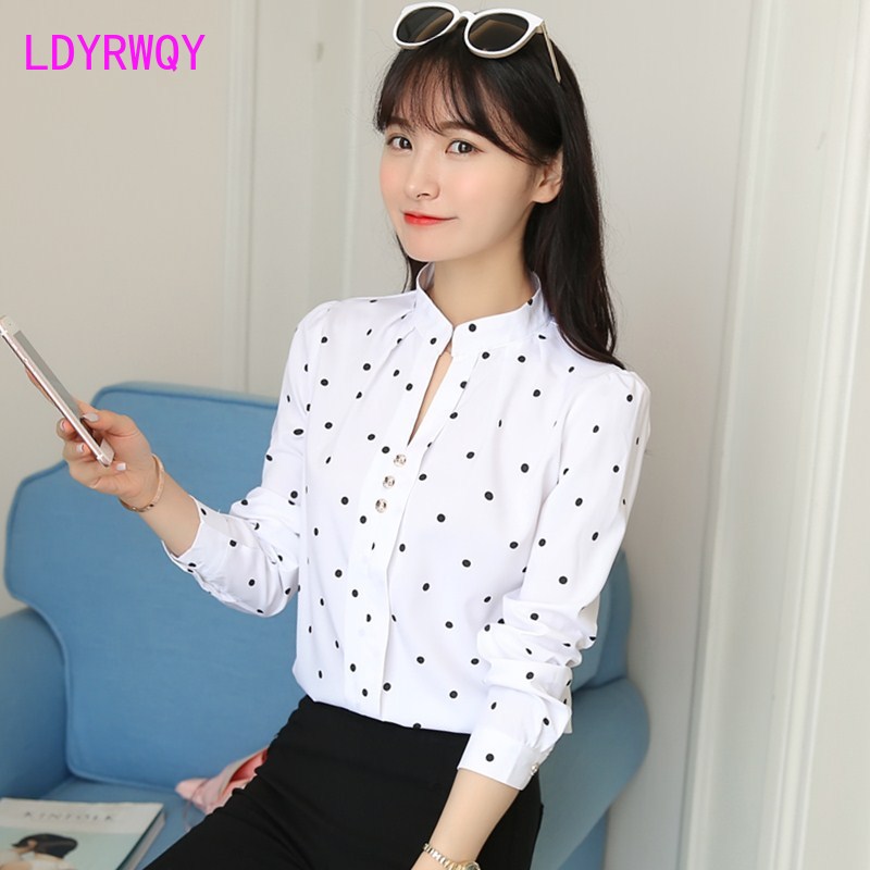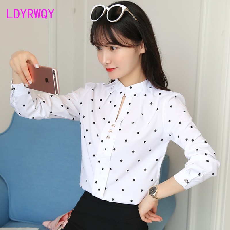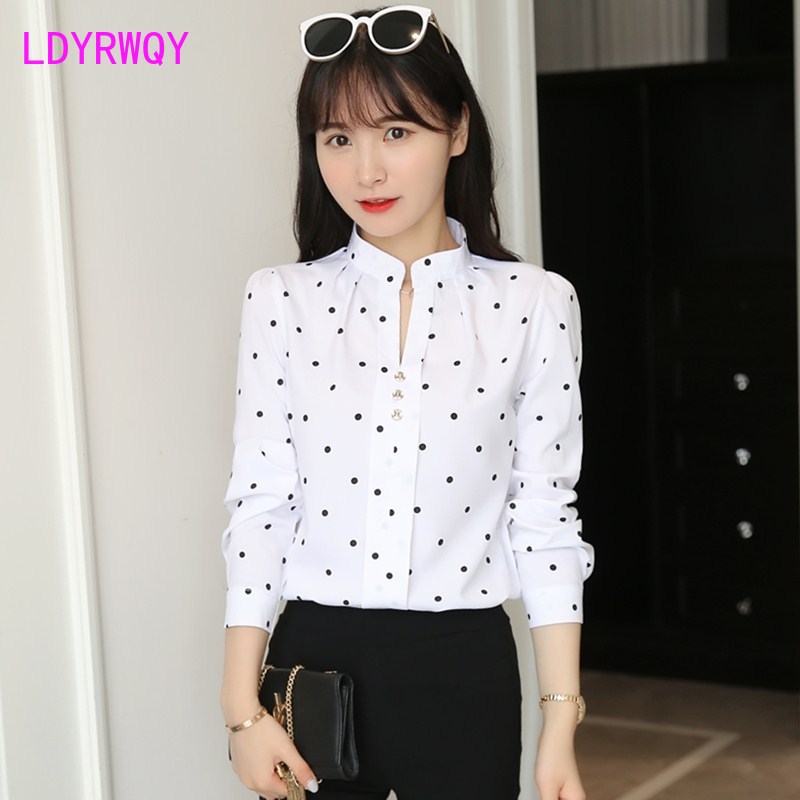 2020 Polka Dot Long Sleeve Professional Wear V-neck Joker Shirt Women Autumn Women Korean Regular Polka Dot Casual