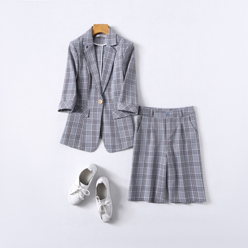 Be the first to review “2020 Summer Autumn Plaid Short Pant Suits Women Office Business Suits Uniform Styles Elegant Plaid Pant Formal Work Wear Sets”