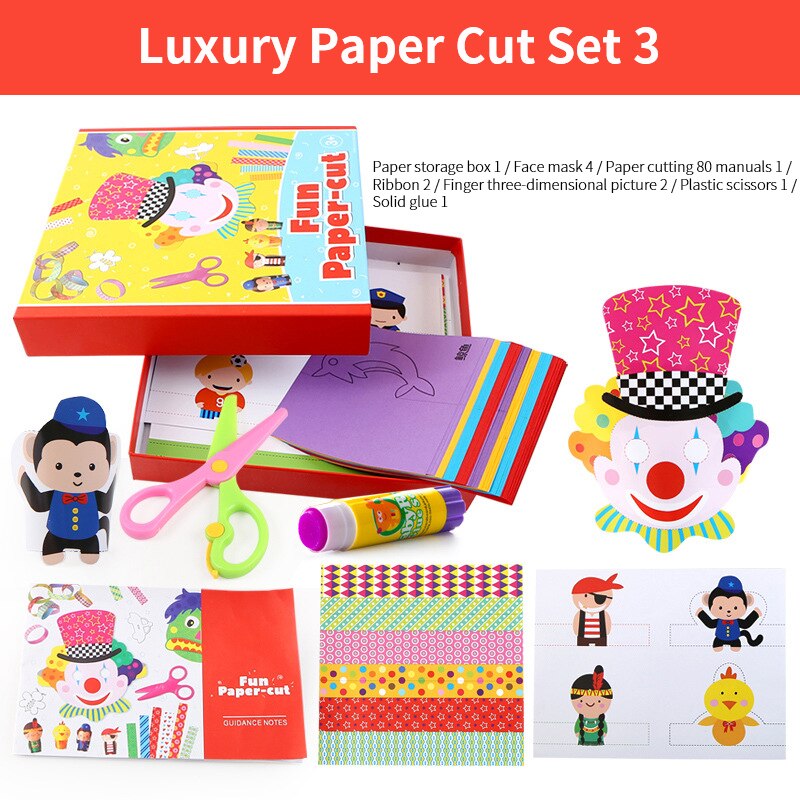 240 pcs/lot Children’s Paper-cut DIY Handmade Animal Plants Origami Paper-cut Stickers Toys Gift Box