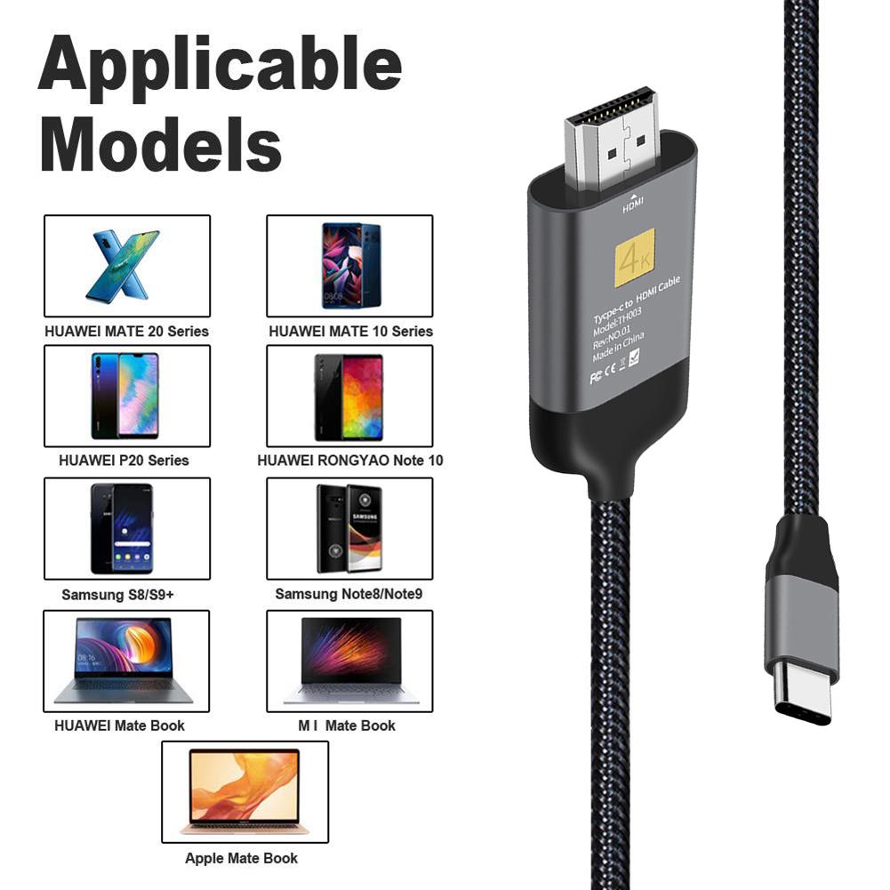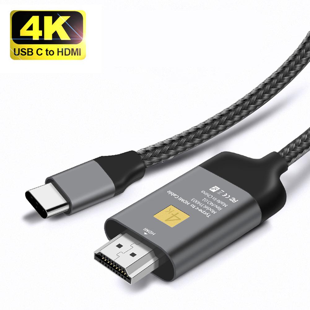 4K 30HZ USB C To HDMI Cable Aluminium Braided Type C To HDMI Adapter Cable 4K For Laptops Smartphones 2M