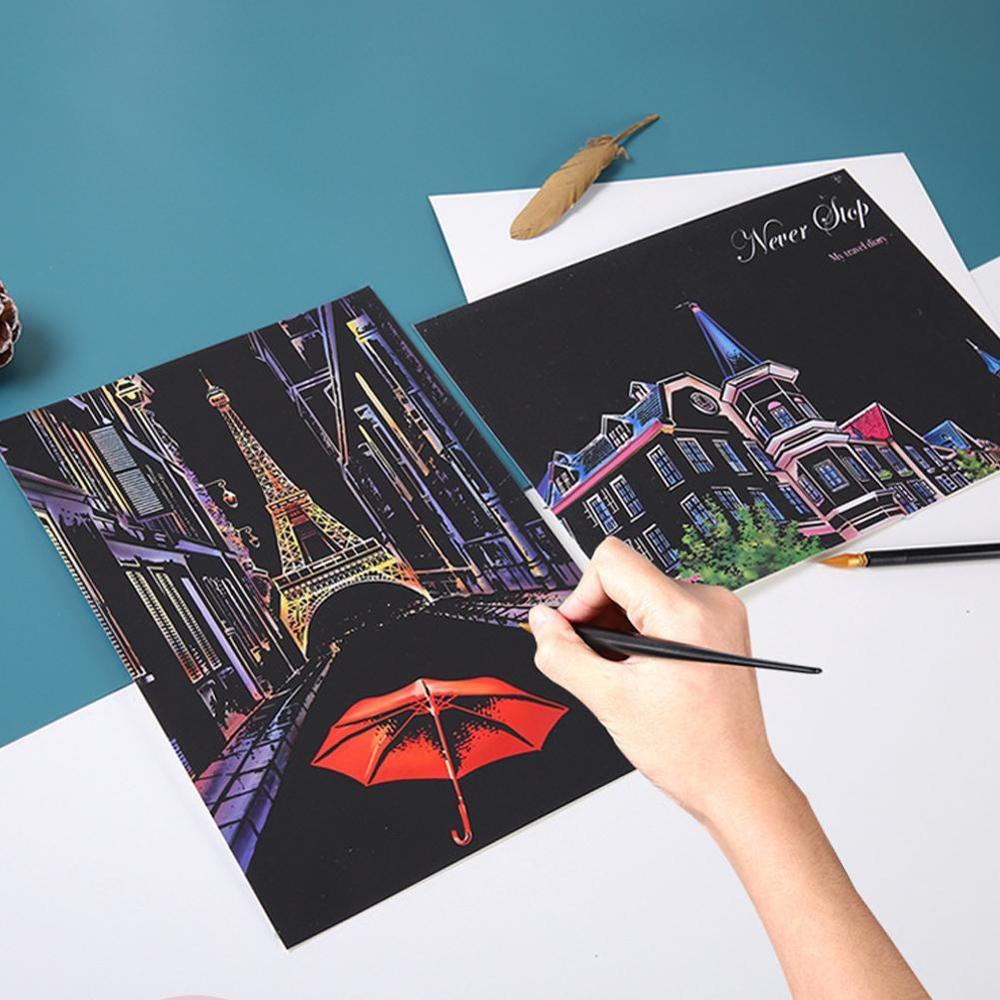4PCS Magic Scratch Art Painting Paper With Drawing Stick Kids Education Drawing Toy Decoration Scraping Diy Handicraft Gift