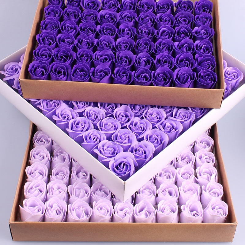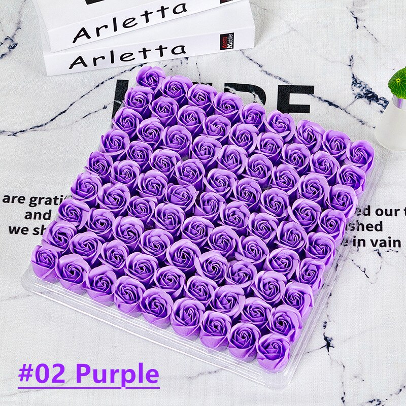 81PCS Colorful Heart-Shaped Rose Soap Flower Wedding Party Gift Handmade Petal Decor Bath Dark Purple Violet Lavender Romantic