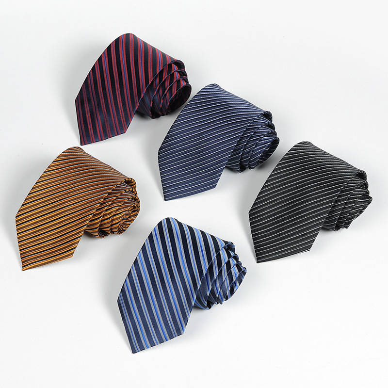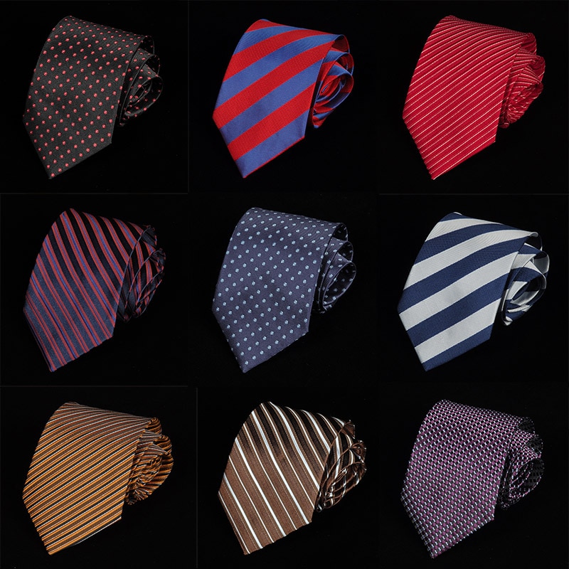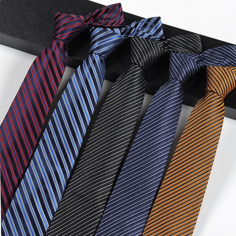 8CM Men Tie Business Dress Accessory Luxury 100% Silk Necktie Groom Wedding Tie Stripe Formal Tie Neckwear Gift for Father’s Day