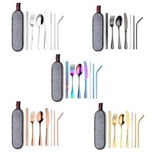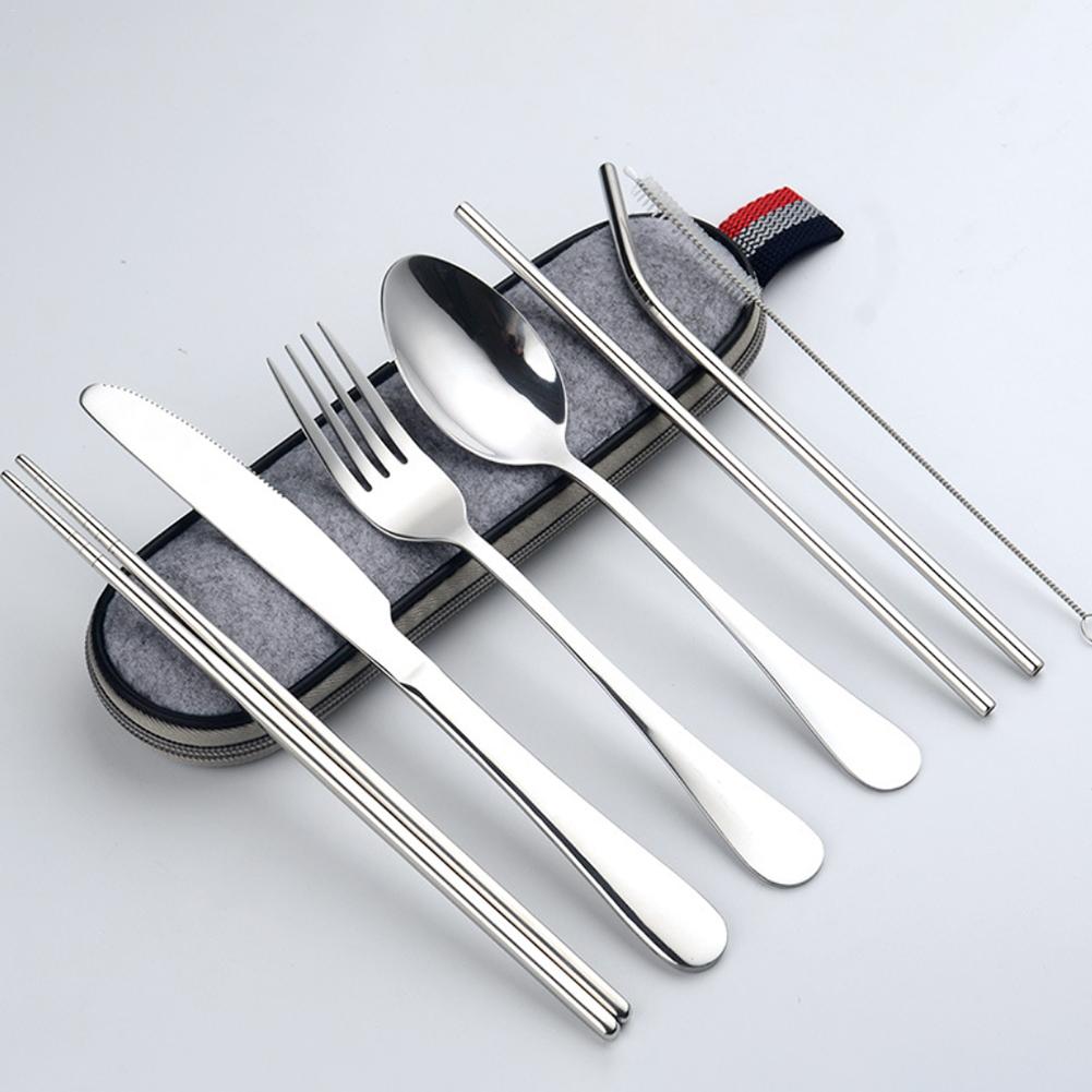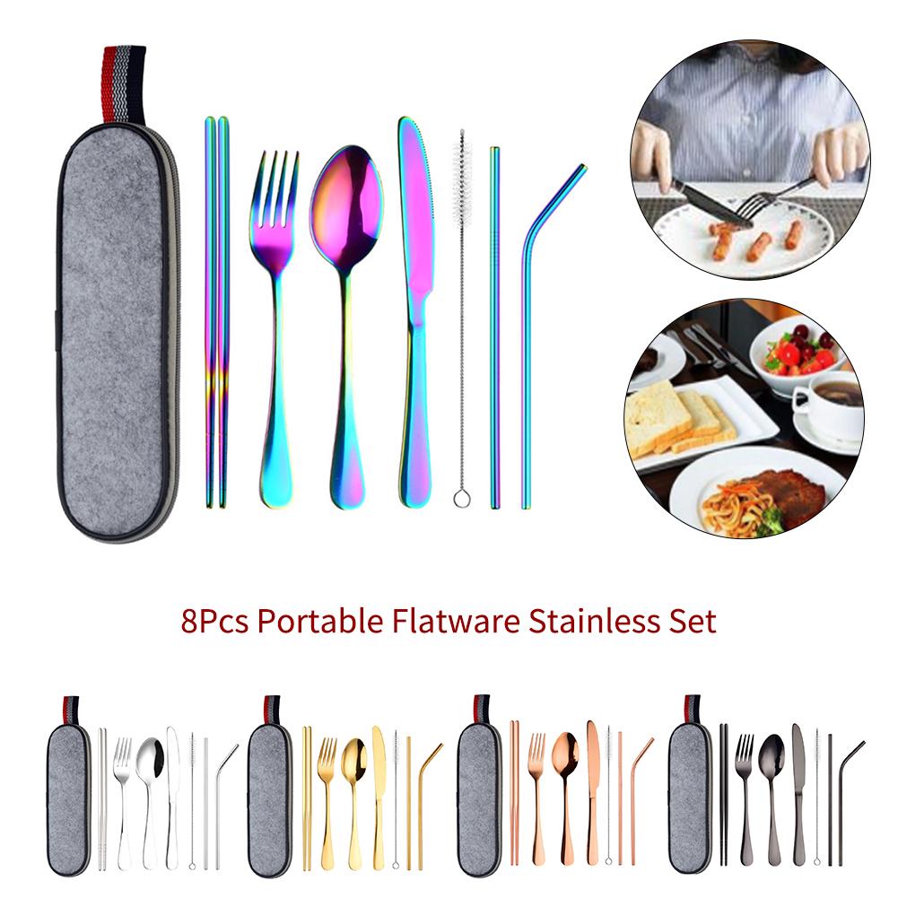 8Pcs Dinnerware Set Travel Cutlery Set Camping Tableware Reusable Utensils Set With Spoon Fork Chopsticks Straw Portable Case