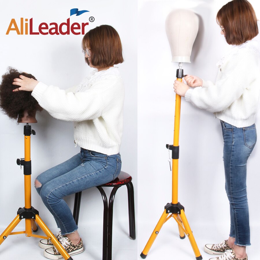 Alileader Hot Selling 125CM Golden Mannequin Head Tripod Adjustable Tripod Wig Stand Wig Making Kit With Wig Storage