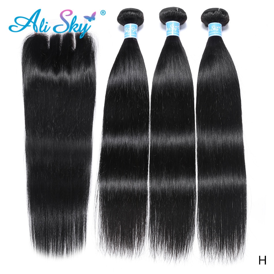 AliSky Peruvian Hair Weave Bundles Straight Human Hair 3 Bundles with 4×4 Lace Closure Pre Plucked Remy Hair Wefts Wholesale