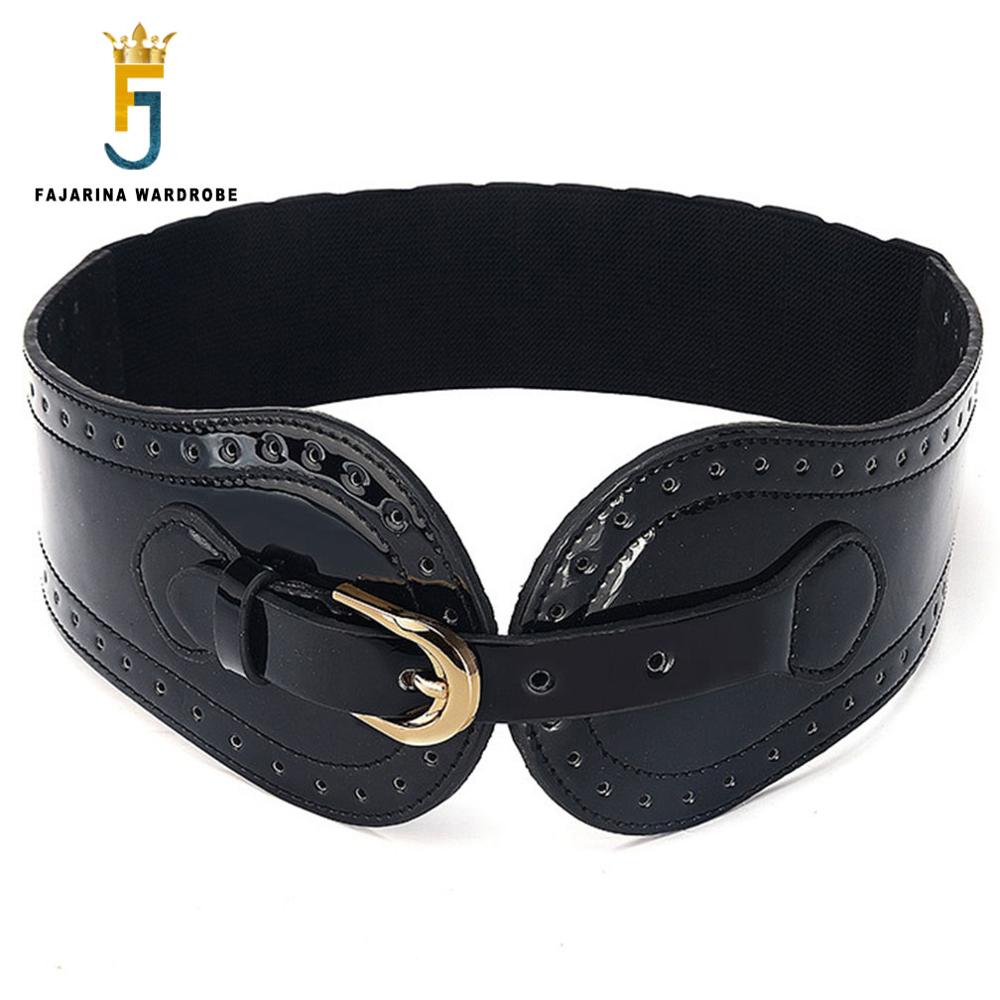 All-match Casual T Show Female Patent Cowhide Leather Pin Buckle Jackets Decorative Style Elastic Wide Girdle for Women LDFJ049