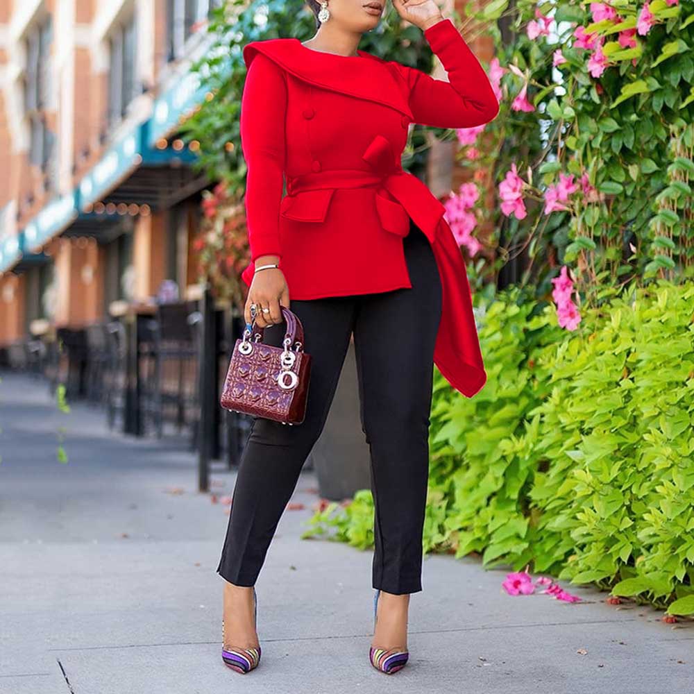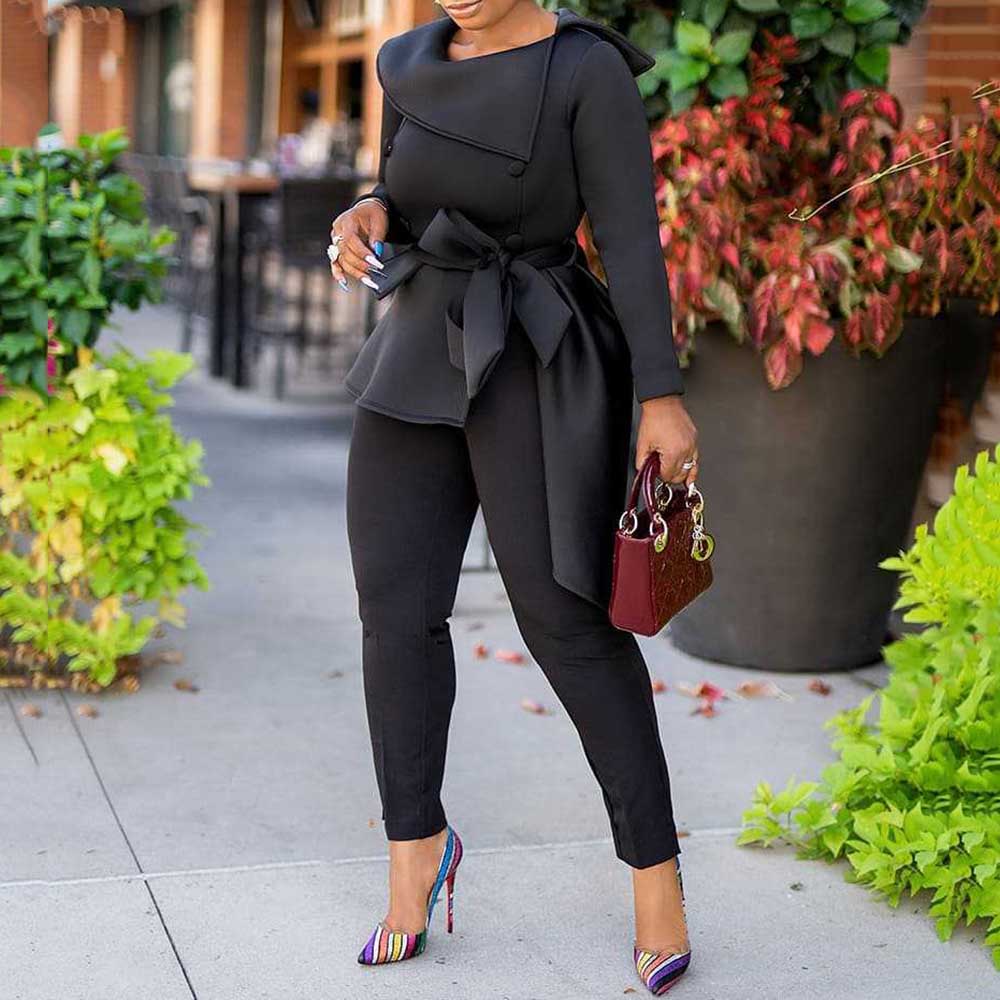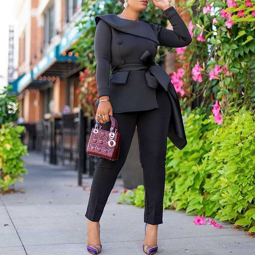 Autumn African Women Blouse Tops 2019 Winter irregular Shirts O Neck Office Ladies Work Wear Elegant Black Asymmetrical Tops