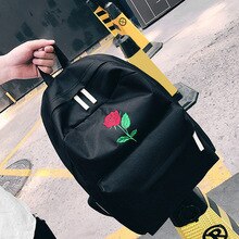Backpack Women Canvas Rose Flower Embroidery Student Teenage Girls School Backpack Travel Bag Black Rucksack Mochila Feminina