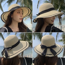 Big Wide Brim Beach Straw Hat Summer UV Protection Foldable Bowknot Sun Hats Women’s Panama Hat Chapeu Feminino Brief Straw Cap
