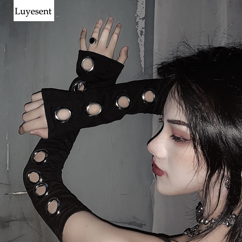Black Punk Gothic Hollow Out Unisex Women Men Eyelet Sport Outdoor Elbow Length Sleeve 2020 Cool Stretch Character Arm Warmer