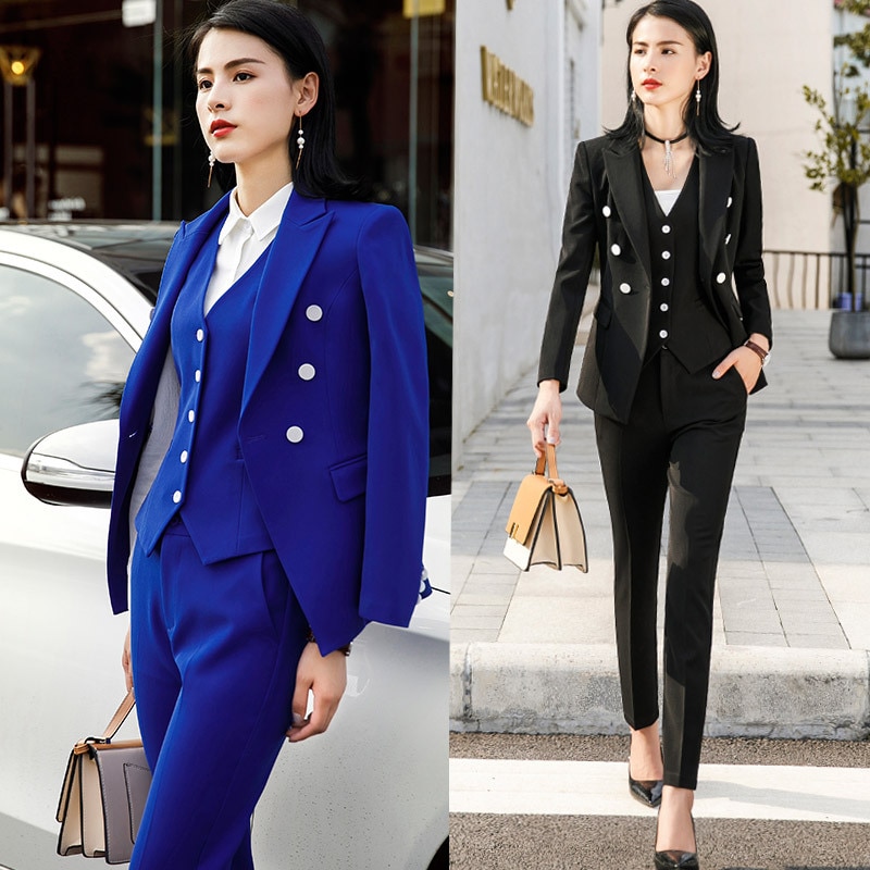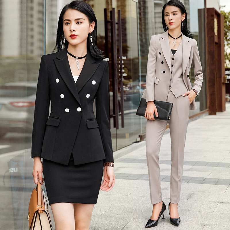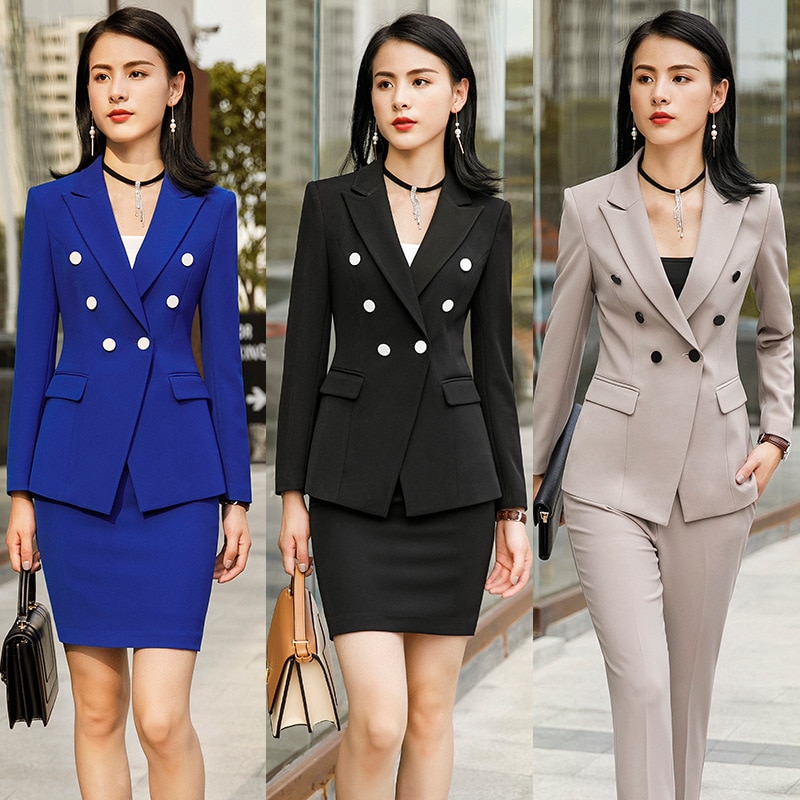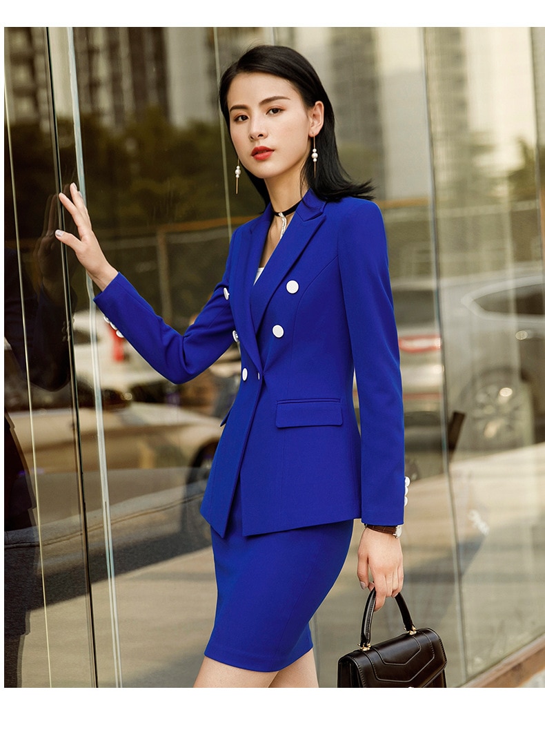 Blue Formal Elegant Uniform Styles Blazers Suits Two Piece With Tops and Skirt For Ladies Office Work Wear Jacket Blazer Sets