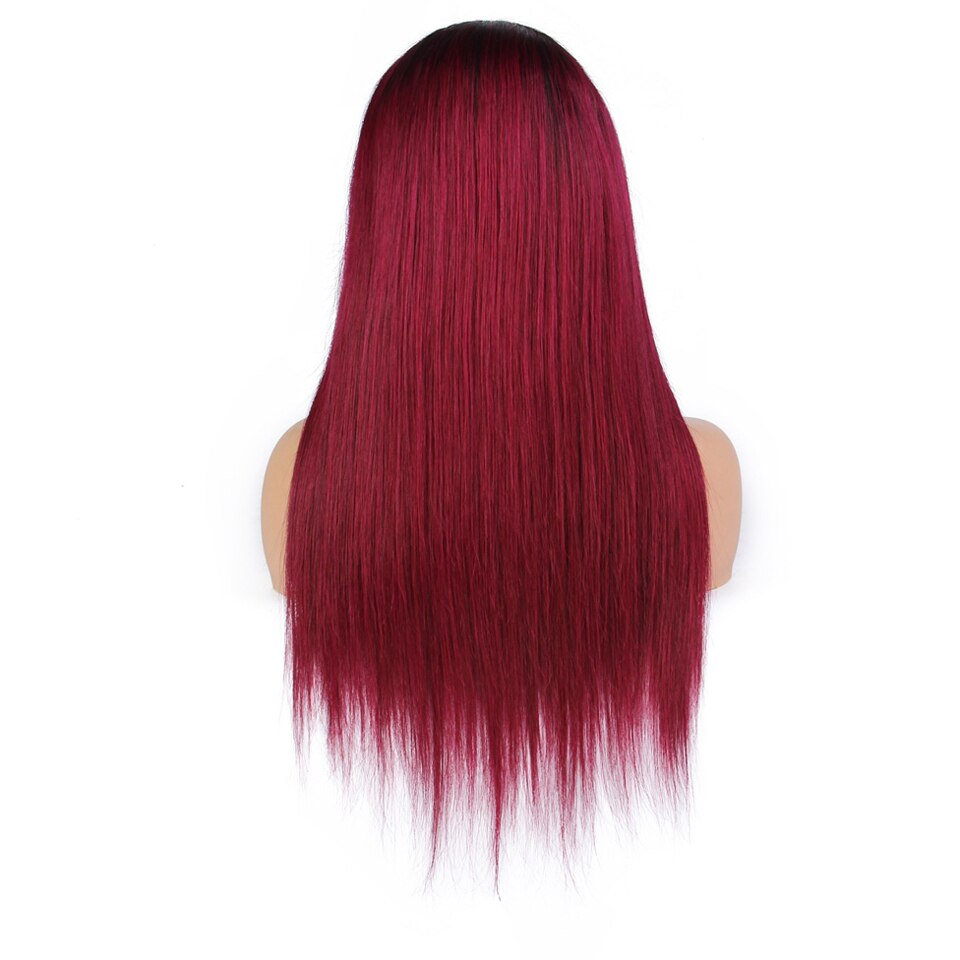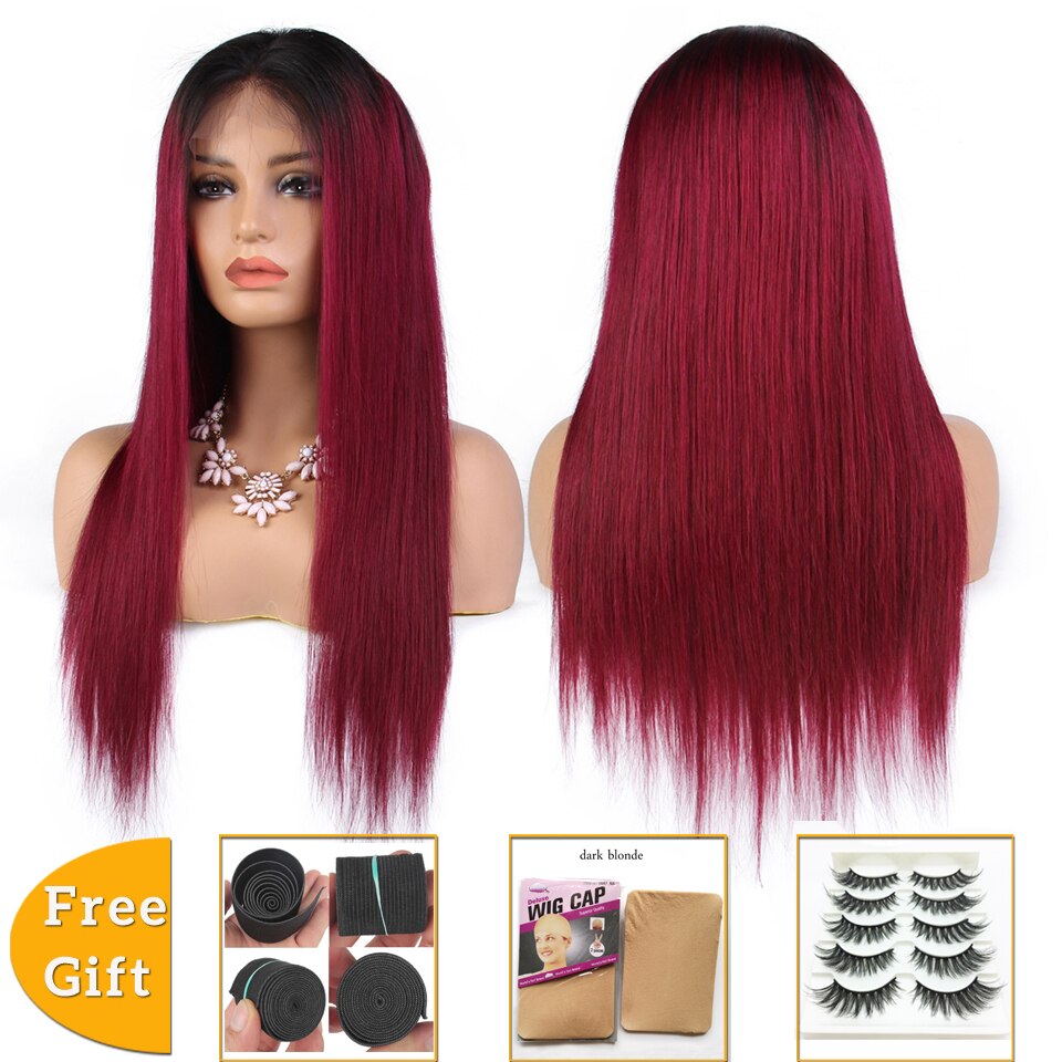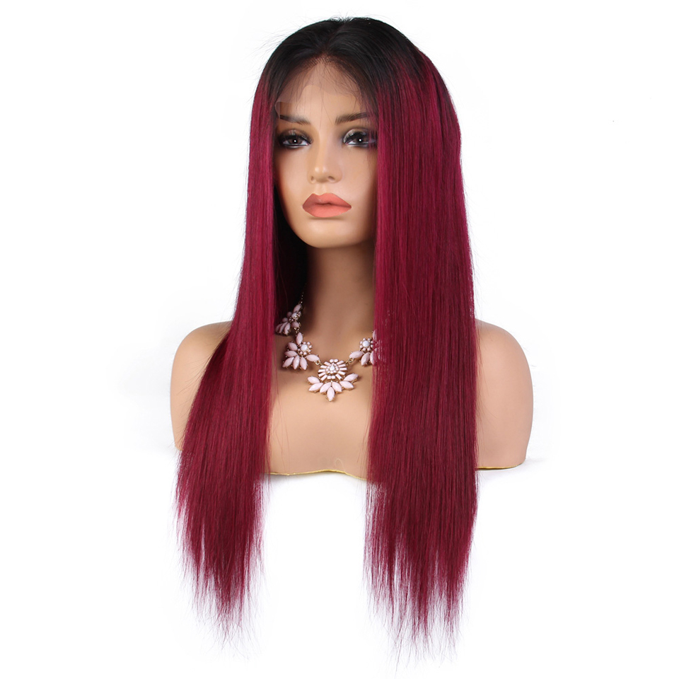 brazilian straight human hair wigs for women 4×4 lace closure wig T1b/99j Burgundy ombre human hair wig non-remy 150% Density