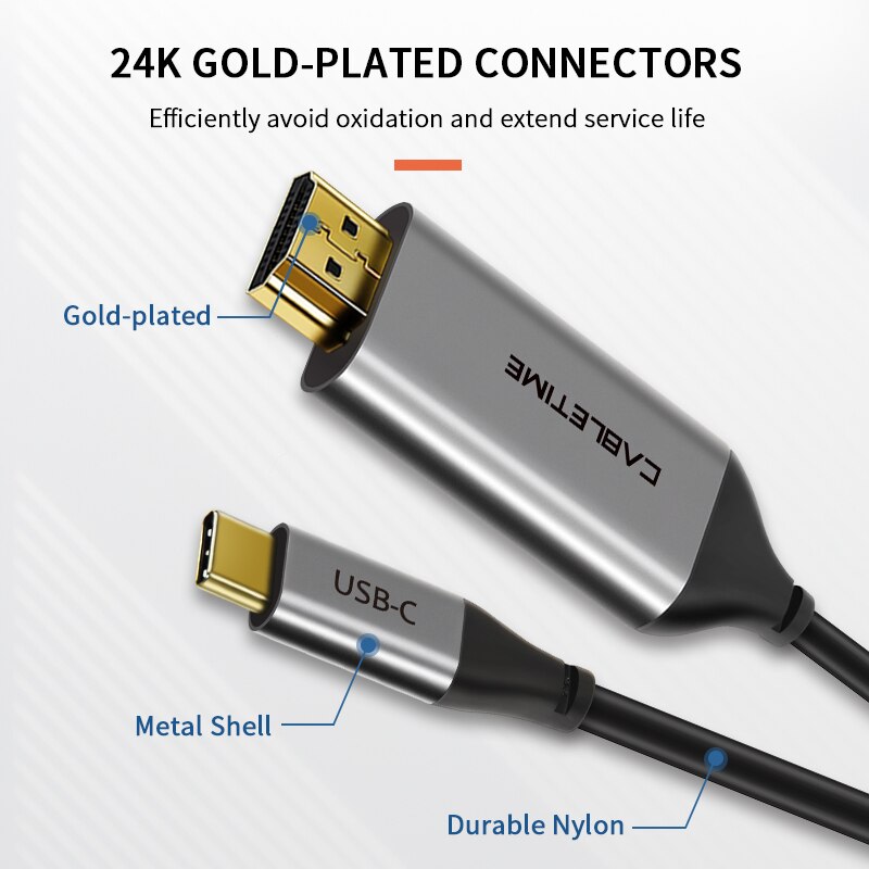 CABLETIME Thunderbolt 3 USB Type C HDMI Cable USB C to HDMI Converter for MacBook Huawei Mate 30 Pro USB-C HDMI Adapter C261