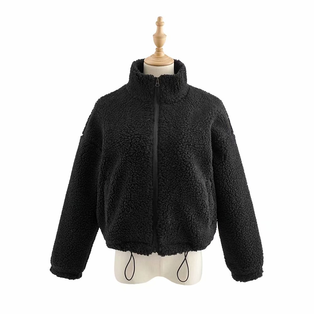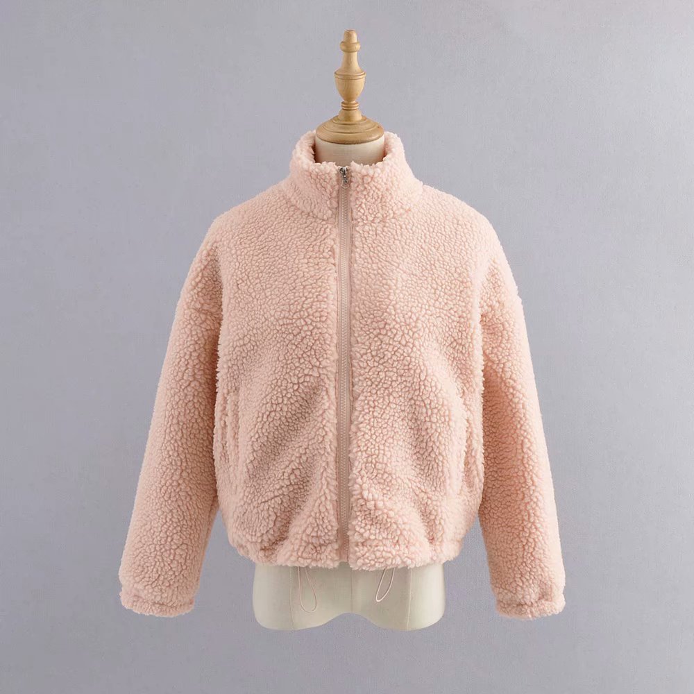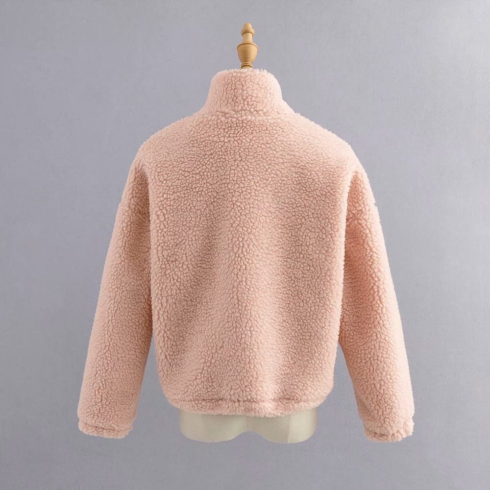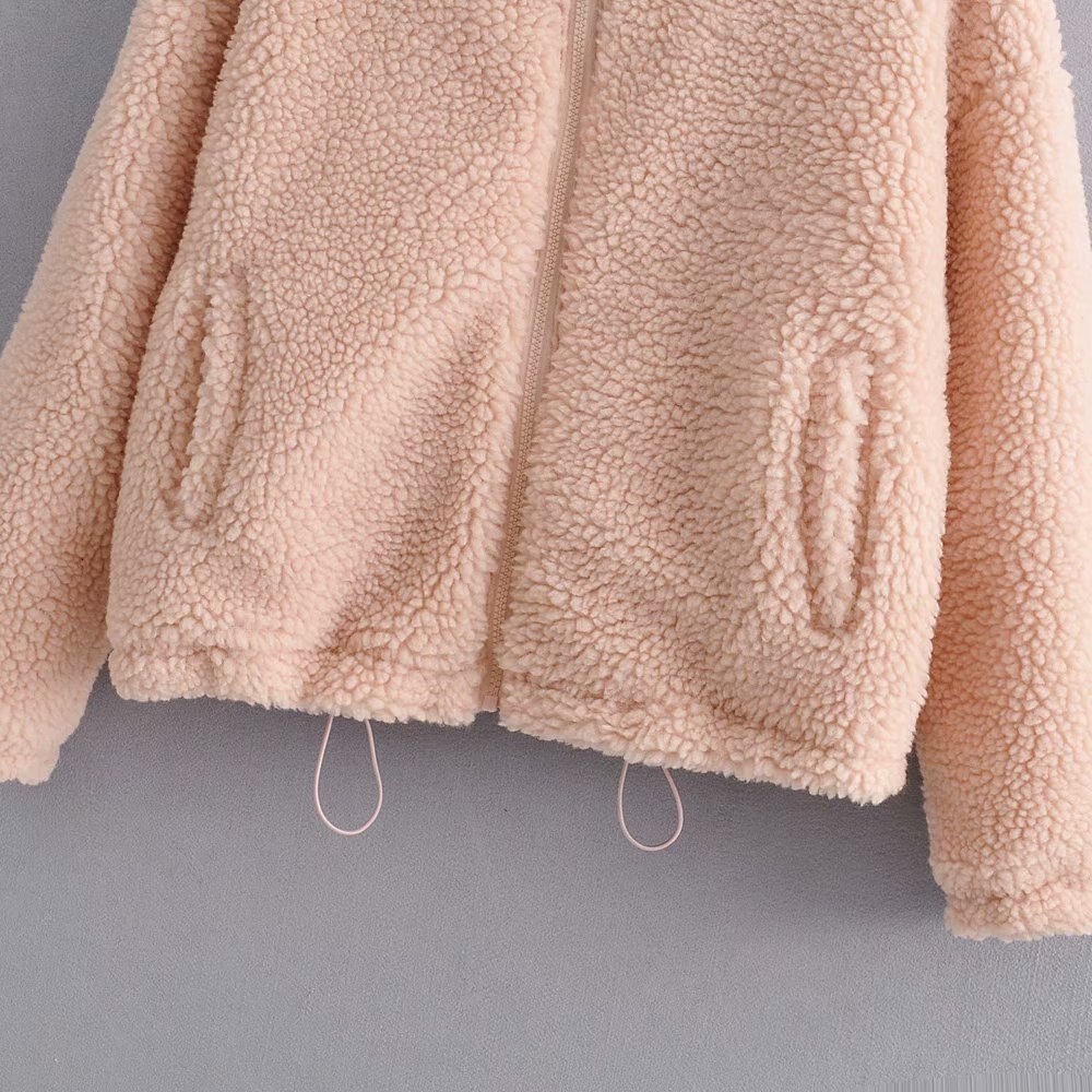 casual faux fur teddy coat women winter pink coat jacket thick pocket short outwear stand collar zipper fur coat oversize