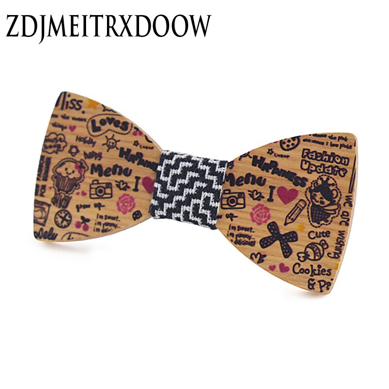 Children Polyester Bowtie Classic Cartoon Ties Men Boys Wooden Bow ties Kids girls Bowties Butterfly Cravat cutey Wood tie