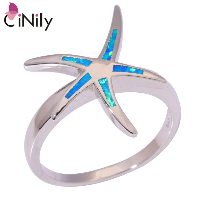 CiNily Created Blue Fire Opal Silver Plated Wholesale Lovely Cute Starfish for Women Jewelry Party Ring Size 6 7 8 9 OJ9097