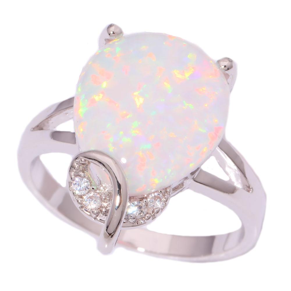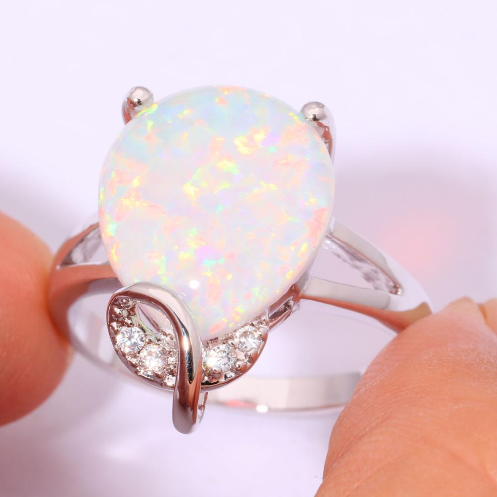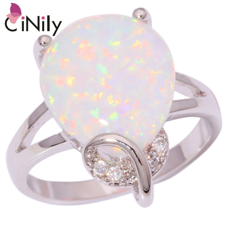 CiNily Created White Fire Opal Cubic Zirconia Silver Plated Ring Wholesale Retail New for Women Jewelry Ring Size 6 7 8 9 OJ8857