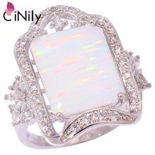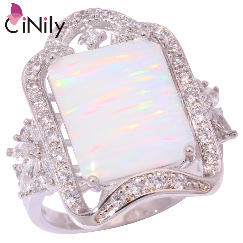 CiNily Created White Fire Opal White Zircon Cubic Zirconia Silver Plated Wholesale for Women Jewelry Ring Size 7 8 9 OJ9151