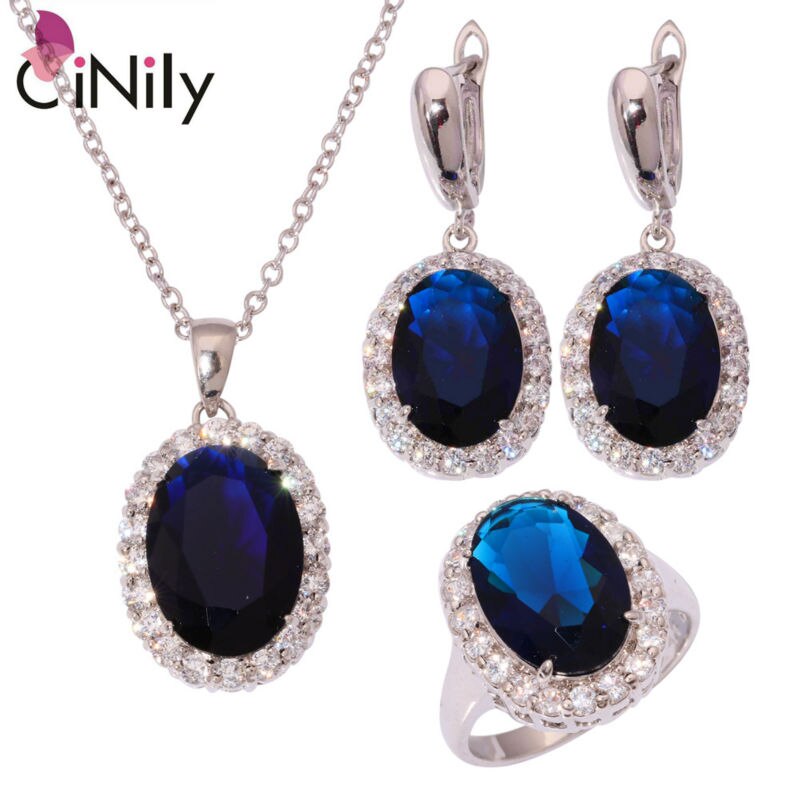 CiNily Multigem Cubic Zirconia Silver Plated Wholesale Hot for Women Jewelry Necklace Pendant Earrings Ring Jewelry Set NT221-25
