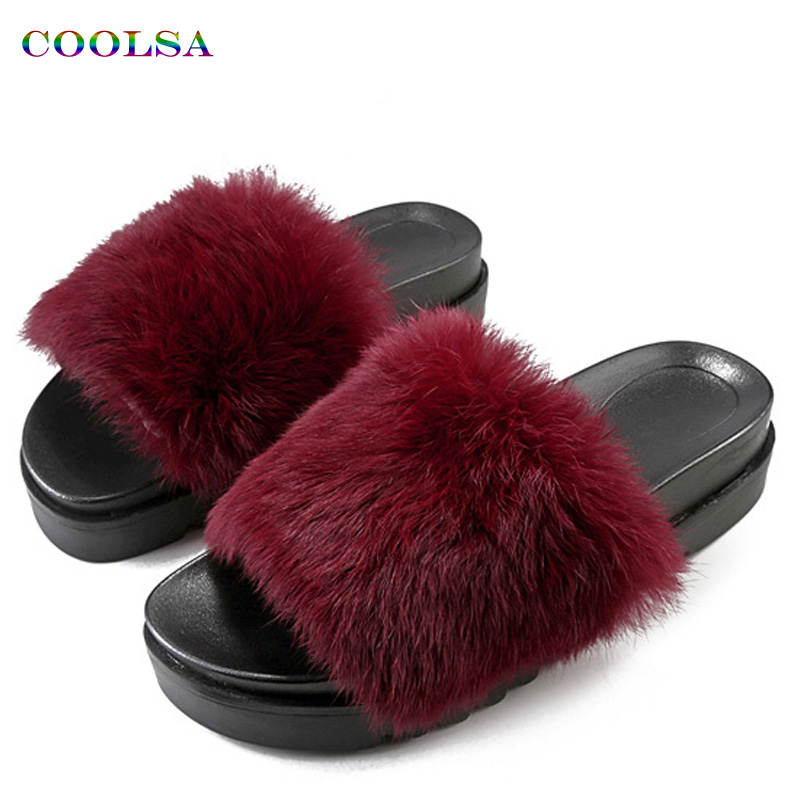 Coolsa New Women Long Plush Slippers Fluffy Rabbit Hair Fur Slides Thick Bottom Sandals Home Flip Flop Female Casual Party Shoes