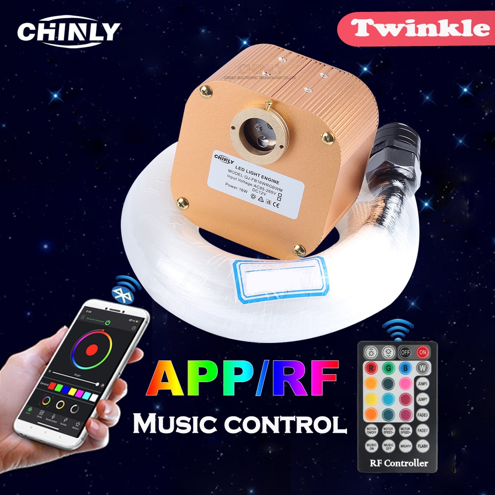 CREE chip 16W RGBW twinkle 28key RF remote LED Fiber Optic Star Ceiling Lights Kit 4m(0.75+1.0+1.5mm) optical fiber+Crystal