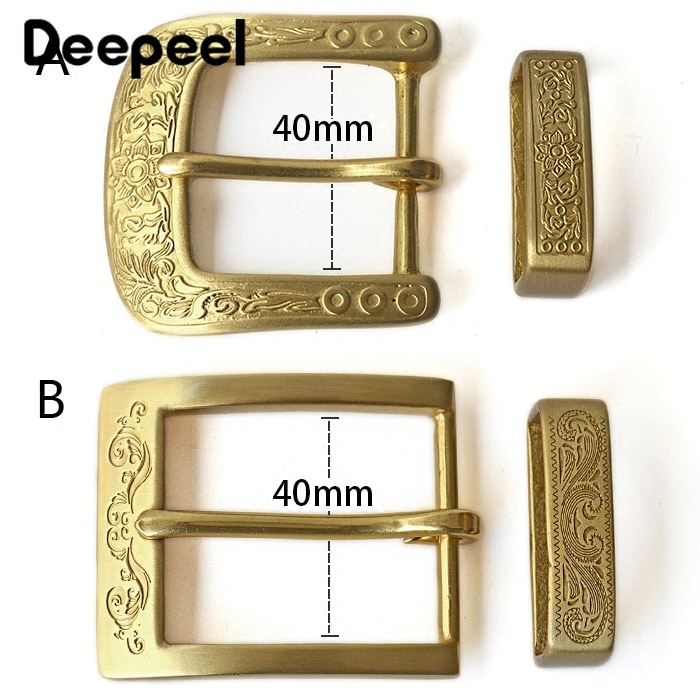 Deepeel 1pc 40mm Pure Brass Copper Pin Buckle Belt Head Carved Men Women Belt Buckle DIY LeatherCraft Accessory for 38-39mm Belt