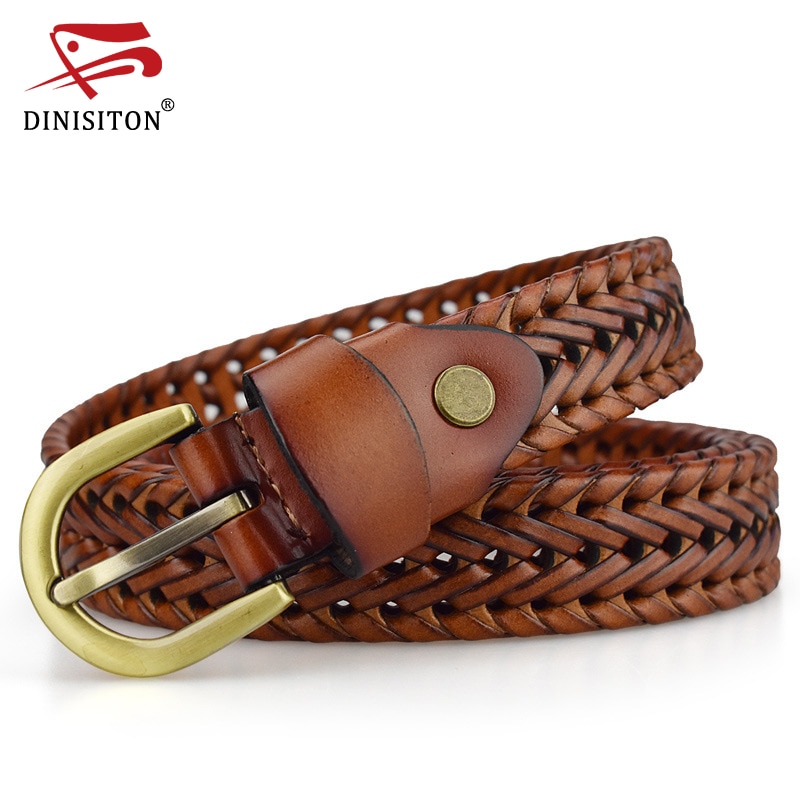 DINISITON Weaving Belt Designer Genuine Leather Belts For Women Woven Thin Female Strap Ladies Braided Belts Woman Fashion