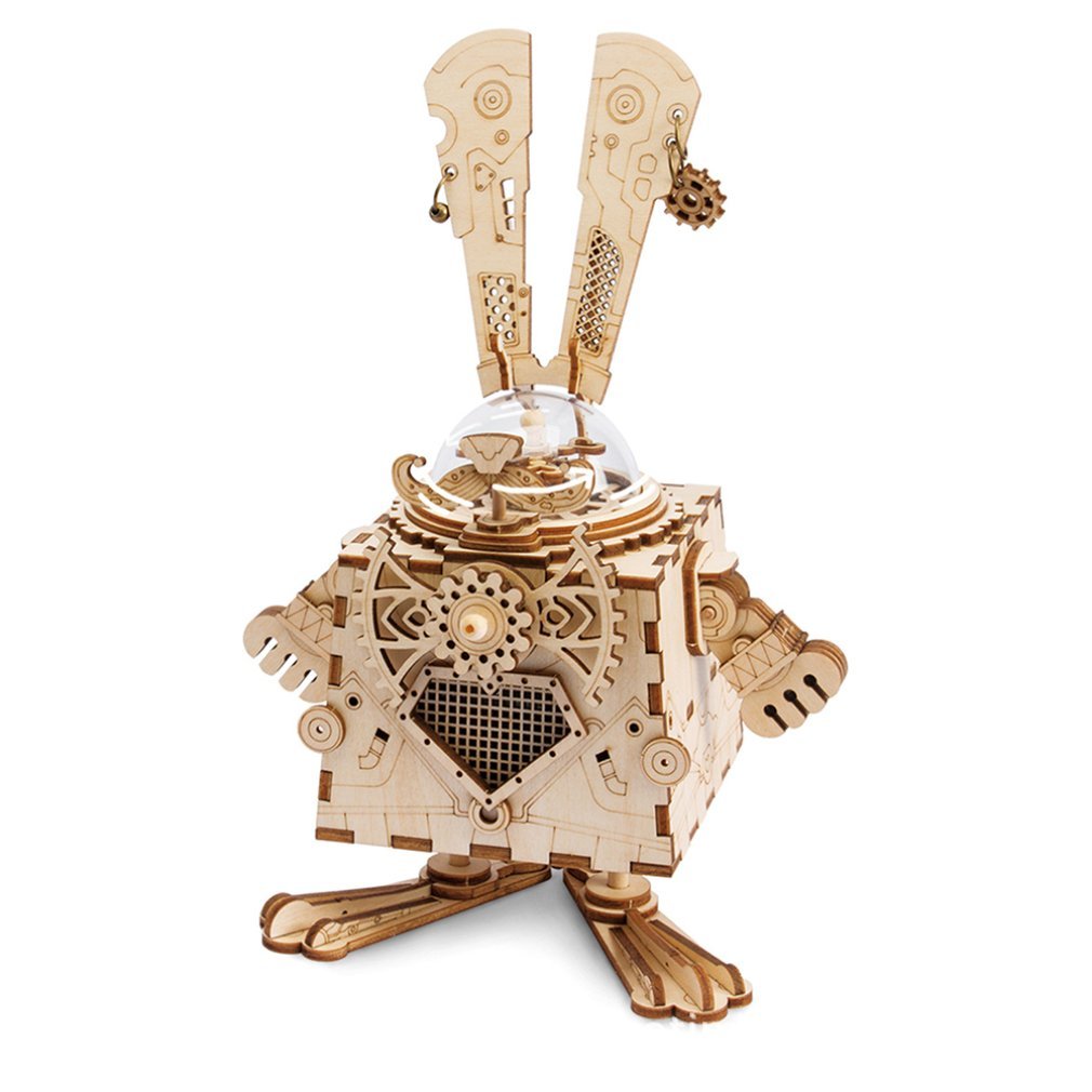 Diy Creative Gifts 3D Wooden Music Box Mechanical Music Box Robot Home Decoration Punk Rabbit Crafts
