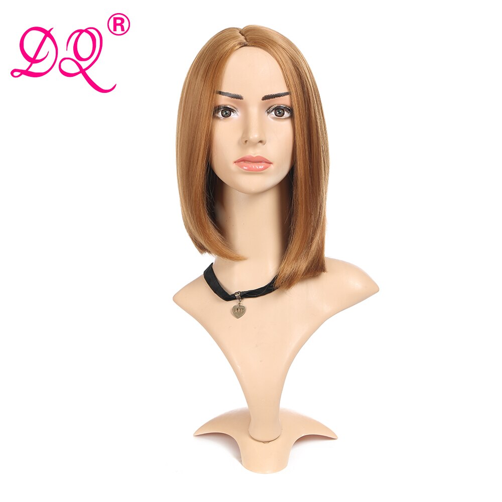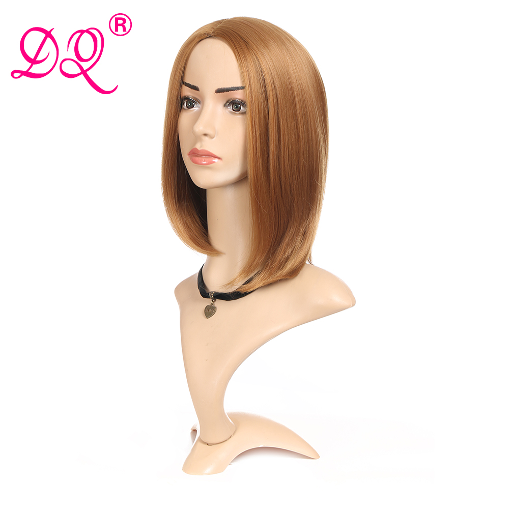 DQ Light Brown Short Bob Wig Style Straight Synthetic Wigs For Black Women Cosplay Wig 12 Inches High Temperature Fiber
