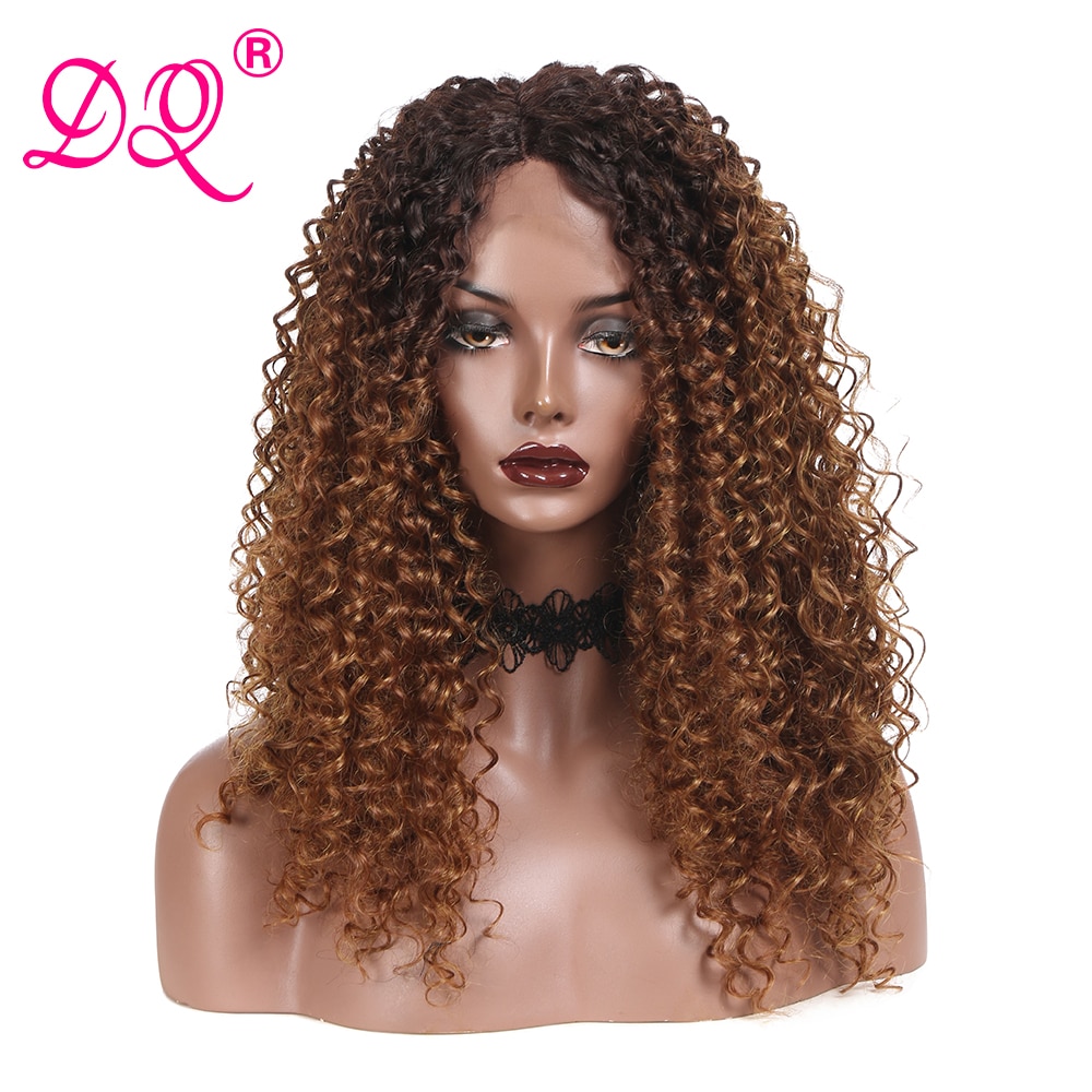 DQ Long Afro Kinky Curly Synthetic Lace Front Wig Women Heat Resistant Fiber Cosplay Wig Ombre Brown Red Black Wig Middle Part