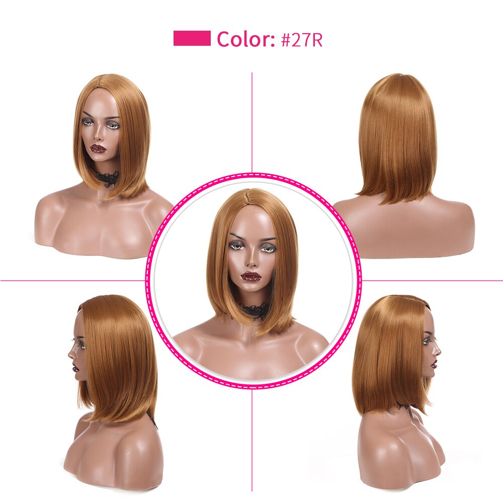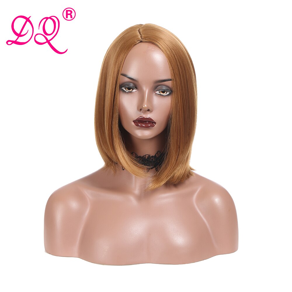 DQ Short Bob Classic Wig Straight Synthetic Wigs Natural Black Brown Wig Middle Part For Women Cosplay Heat Resistant Fiber