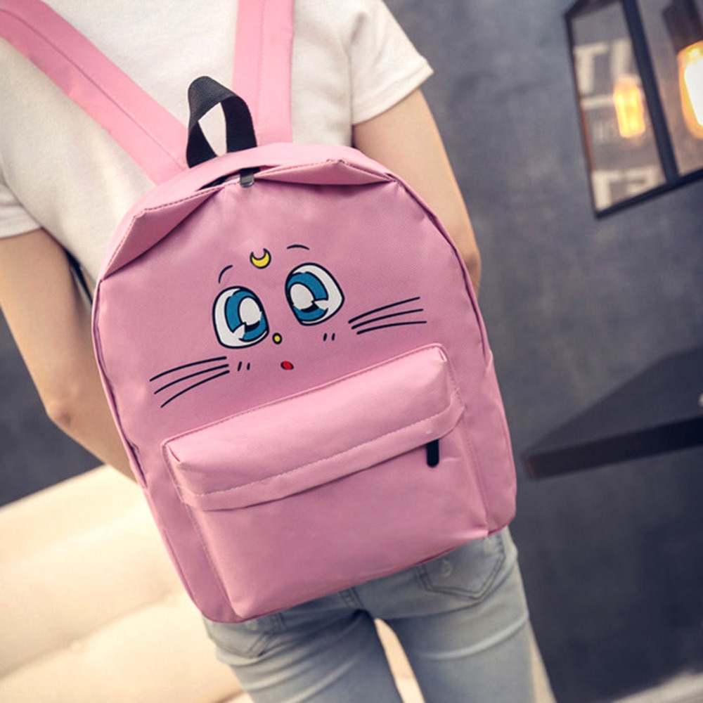 Ear Cat Flower Printed Casual Backpack Daypack Women Canvas Cartoon Teenage Girls School Backpacks Travel Bag Mochila Feminina