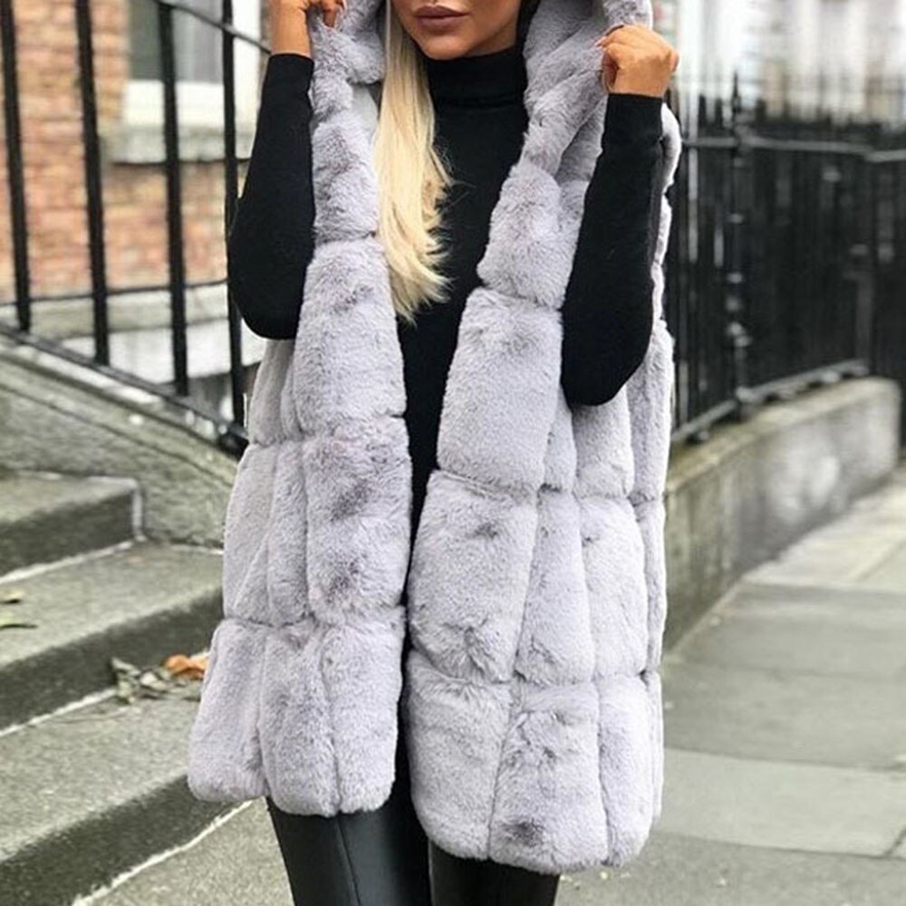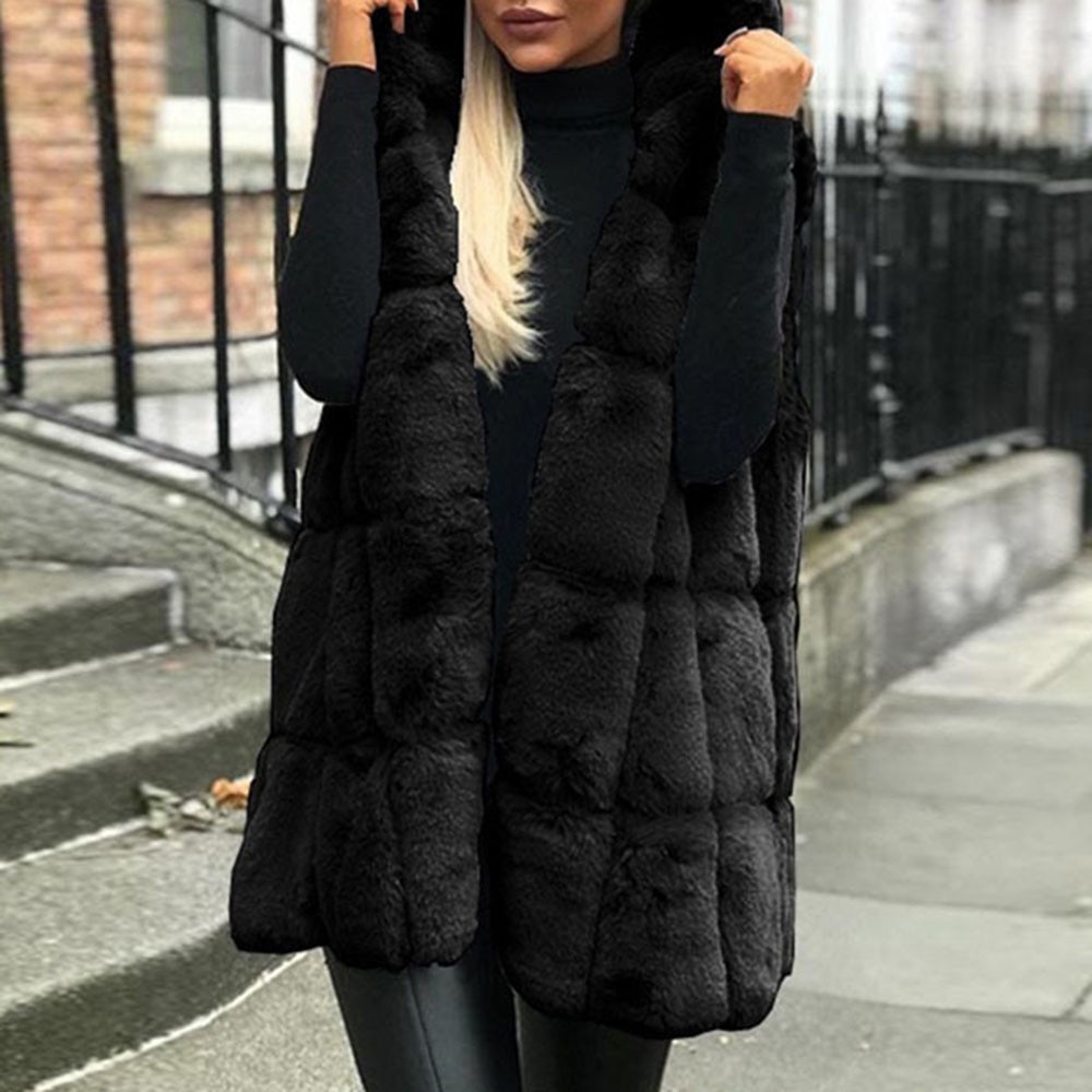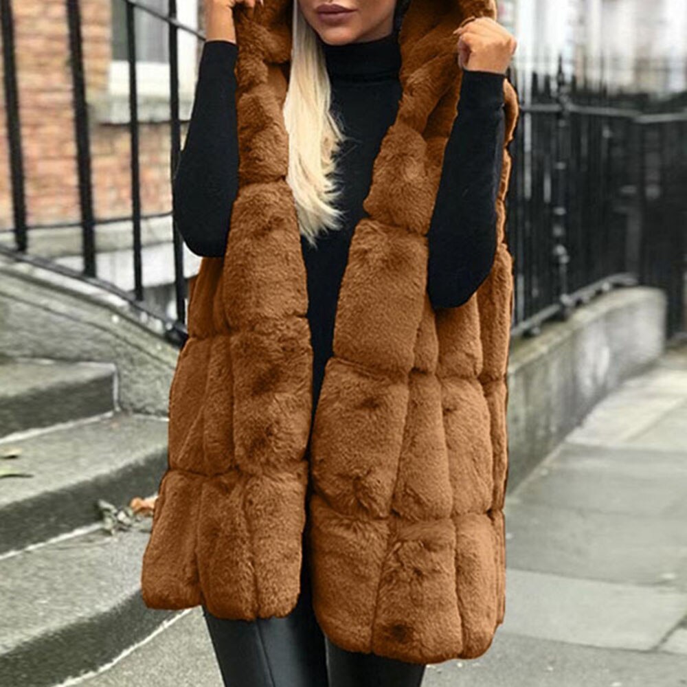 Elegant Faux Fur Vest Women Solid Oversized Sleeveless Winter Thick Warm Hoody Coat Fox Fur Gilet Overcoat Causal Retro Outwear