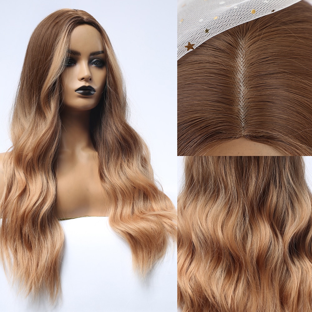 Emmor Long Brown Blonde Ombre Synthetic Wigs with Bangs Heat Resistant Hair Cosplay Daily Wavy Wig for White Black Women